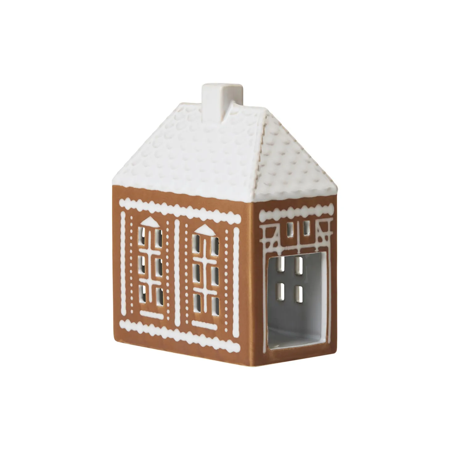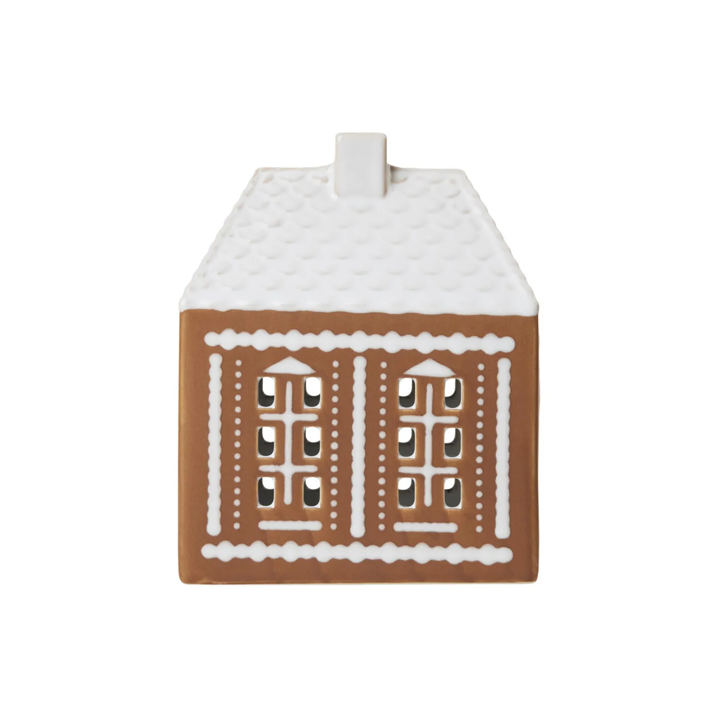 Kähler Gingerbread er et moderne honningkagehus fra Kähler, hvor kombinationen af et charmerende udtryk og håndlavede designtraditioner møder varmen fra fyrfadslysene, der skaber både stil og hygge på de mørke decemberaftener. Honningkagehuset er en rigtig julekageklassiker, der findes i forskellige udgaver i mange lande. Og hvis du har prøvet at give dig i kast med kagekunsten at skabe et selv, ved du, at det ikke er helt nemt – men med honningkagehuset fra Kähler Gingerbread er du sikker på succes og får ovenikøbet ekstra julestemning i boligen, når lyset strømmer ud ad lyshusets håndskårne vinduer. Lyshusene kommer i to varianter og har en brun, mat yderside, der minder om honningkagedejen. De er pyntet med hvide, blanke dekorationer og har hvide tage, der minder om glasur. Og som en vigtig detalje er honningkagehusene hvidglaseret indvendigt, så det varme lys fra fyrfadslyset reflekteres og skinner ud.