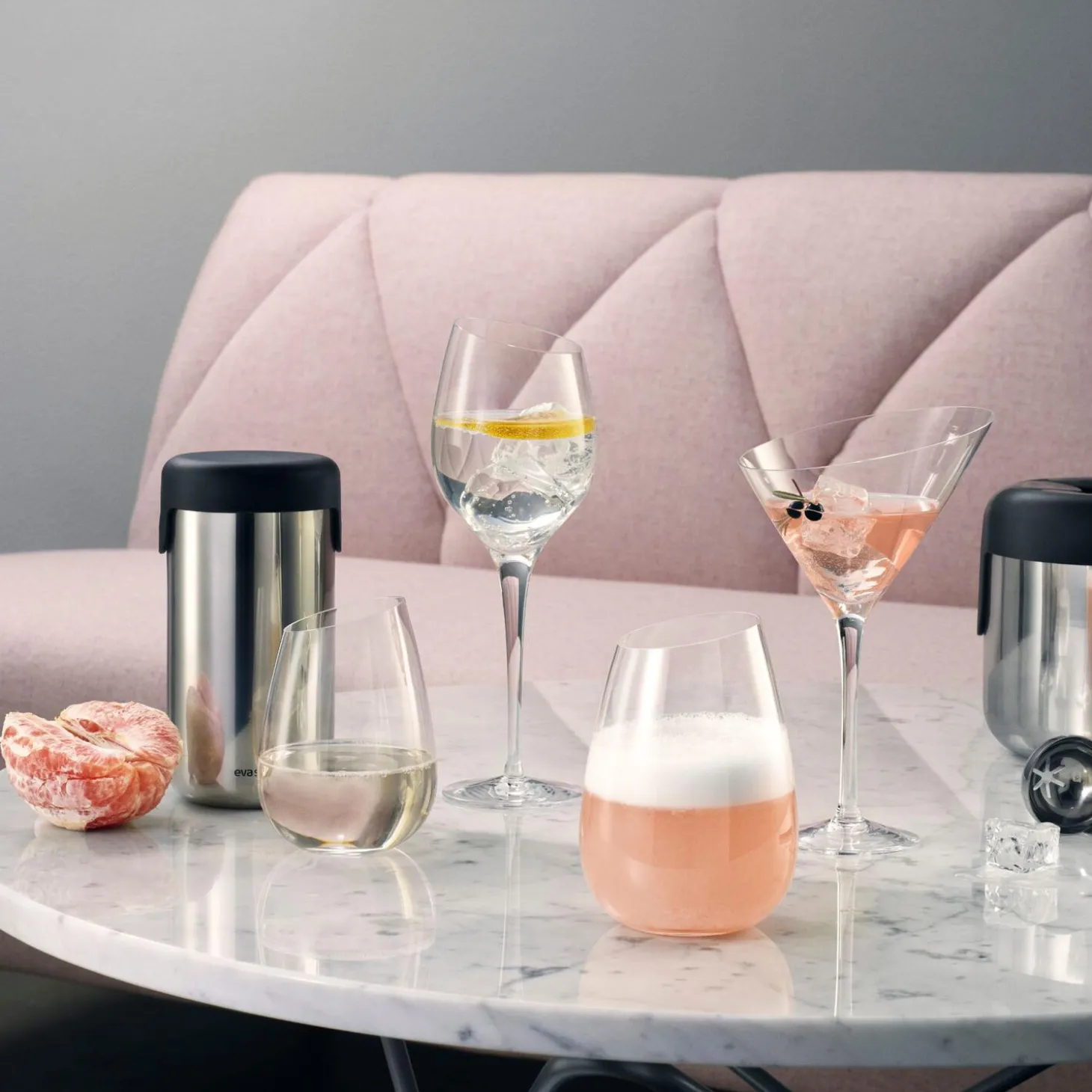 Glasset med sin ikoniske skrå kant komplementerer enhver borddækning og giver både stil og karakter til hverdagsbordet såvel som til festbordet. Glasset har mange anvendelsesmuligheder og er velegnet til servering af eksempelvis vand, juice, saft, smoothies, drinks eller som et hverdagsvinglas. Glasset er let at rengøre og tåler maskinopvask på glasprogram.
