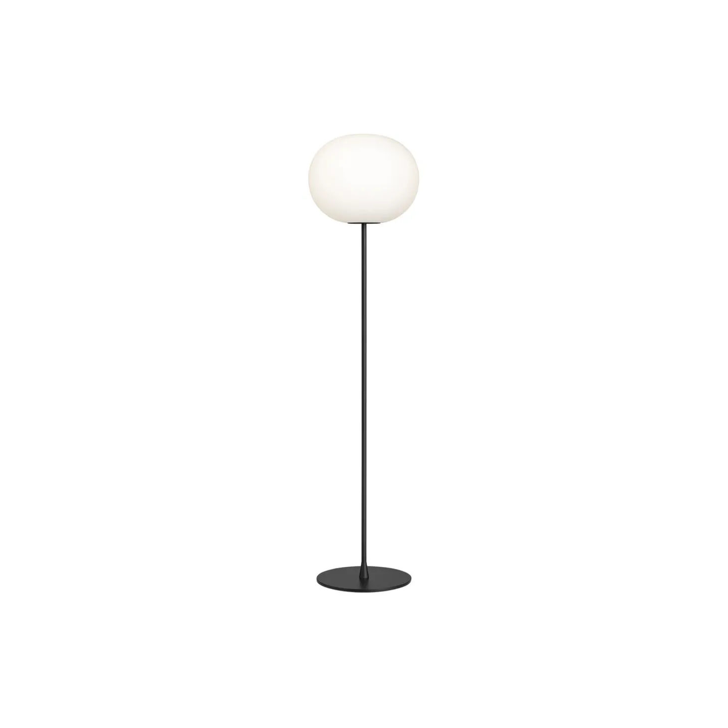 Glo-Ball F3 gulvlampe i glas og lakeret stål fra Flos. Farve: black/opal. Mål: H: 185 x Ø 42 cm. Lyskilde: E27 maks. 250W. Design: Jasper Morrison.