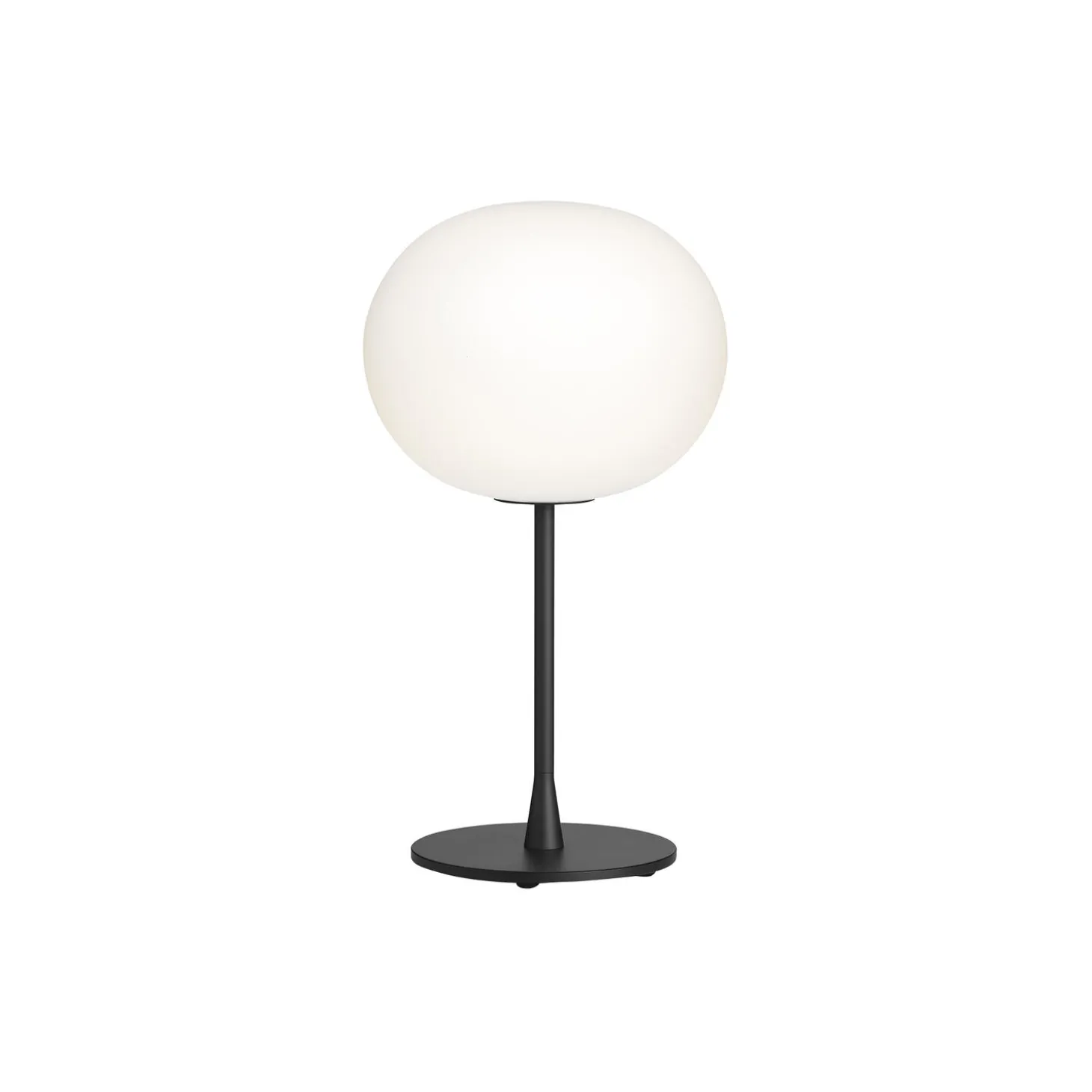 Glo-Ball T1 bordlampe i glas og lakeret stål fra Flos. Farve: black/opal. Mål: H: 60 x Ø 33 cm. Lyskilde: E27 maks. 150W. Design: Jasper Morrison.