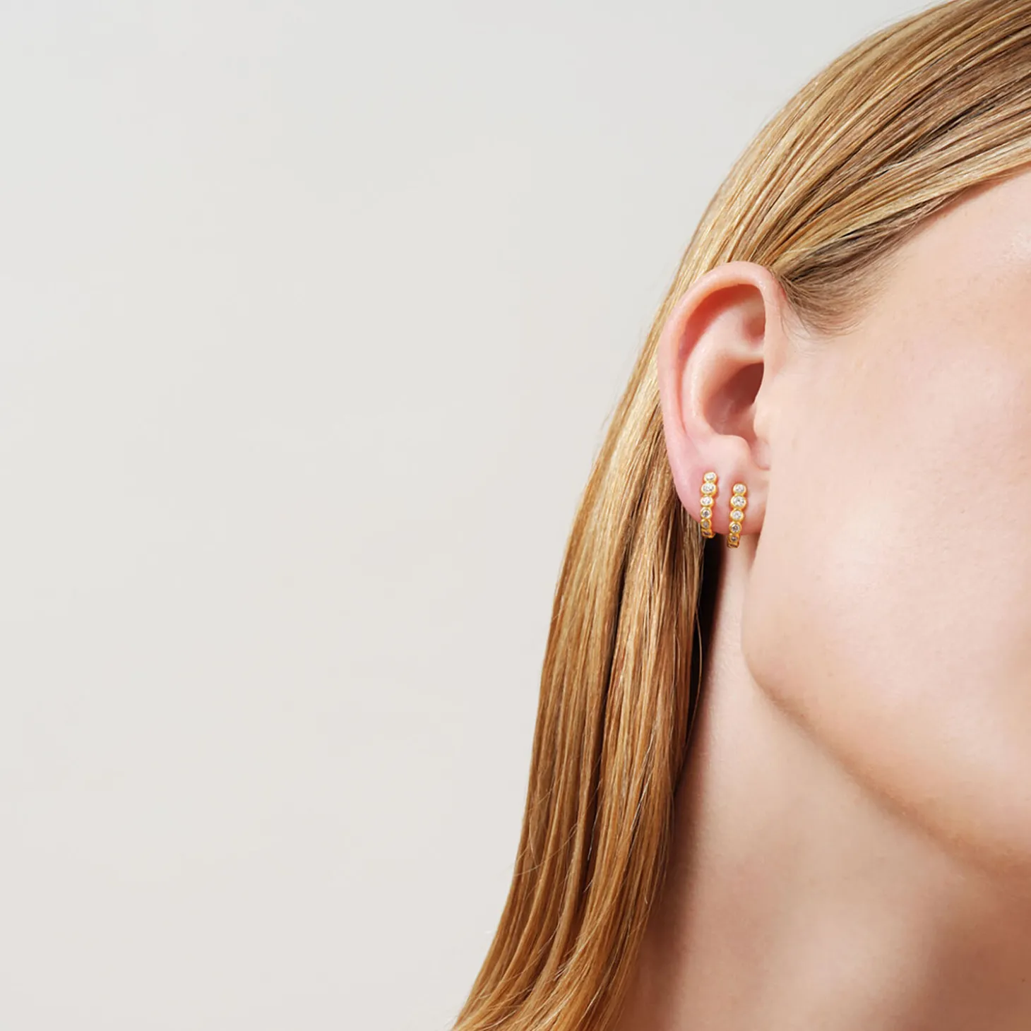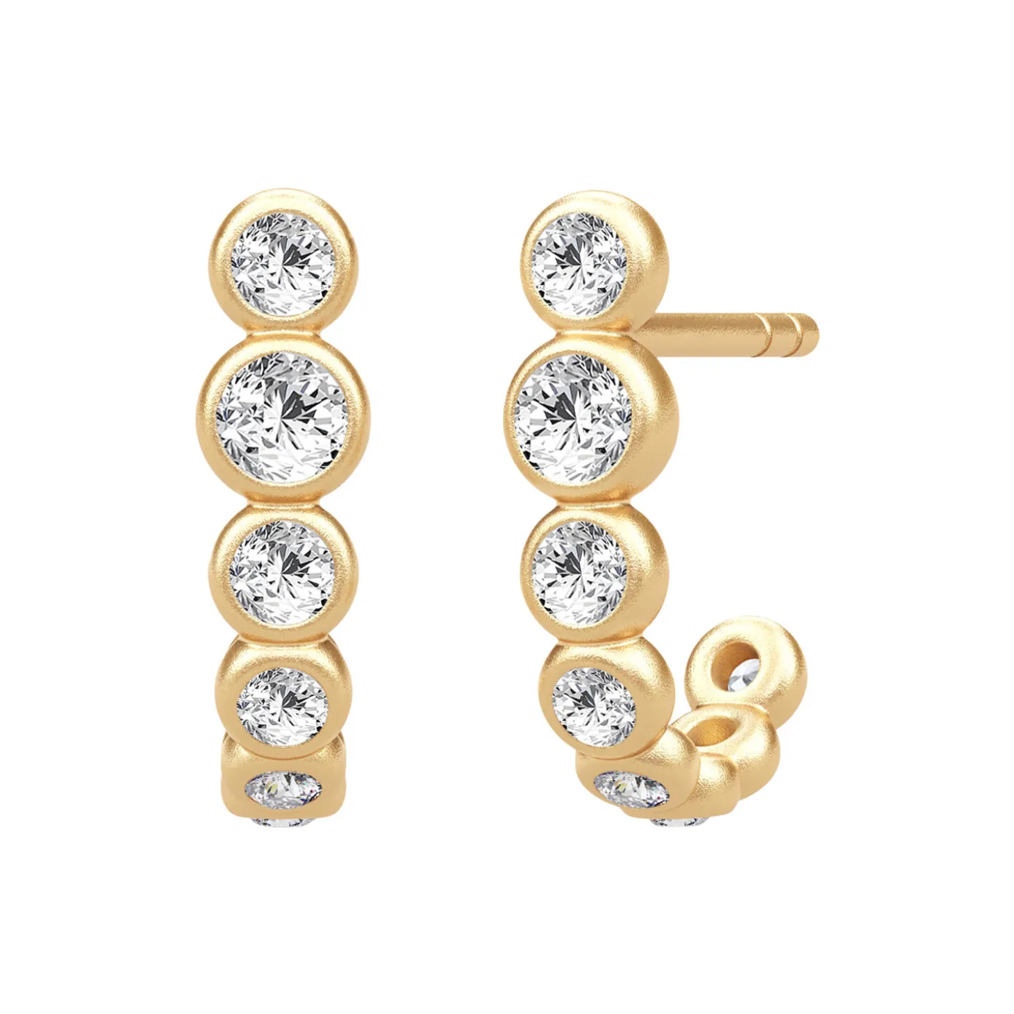Denne enestående Grace ørestik bidrager med sin ‘J’-formede kurve til at skabe et organisk og unikt udseende. Øreringen er lavet i 22 karat forgyldt 925 sterlingsølv og præsenterer sig med en bemærkelsesværdig satinfinish. De runde funklende cubiske zirkoniaer i forskellige størrelser er blevet håndsat og indrammet i runde fatninger, der giver øreringen et iøjnefaldende udtryk. Denne elegante ørestik er perfekt til at kombinere med andre øreringe eller smykker fra Grace-kollektionen.
