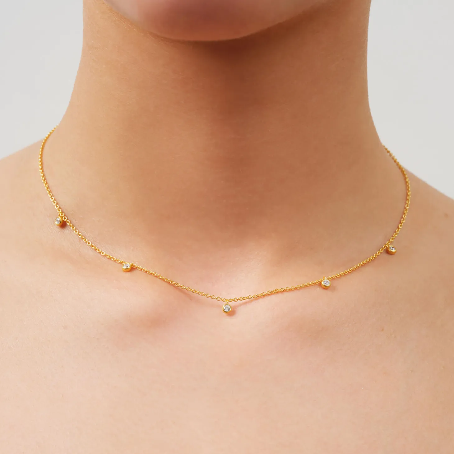Oplev den fulde elegance ved Grace-halskæden, der let kan kombineres med matchende øreringe, ringe og armbånd fra den enestående Grace-kollektion. Grace halskæden er lavet i 22 karat forgyldt 925 sterlingsølv med en længde på 40 cm. Sine fem strålende cubiske zirkonia er håndsat og indfattet i runde fatninger, som gør denne kæde til en submil tilføjelse til den bemærkelsesværdige kollektion. Denne kæde kan både fås i forgyldt og rhodineret satin finish.