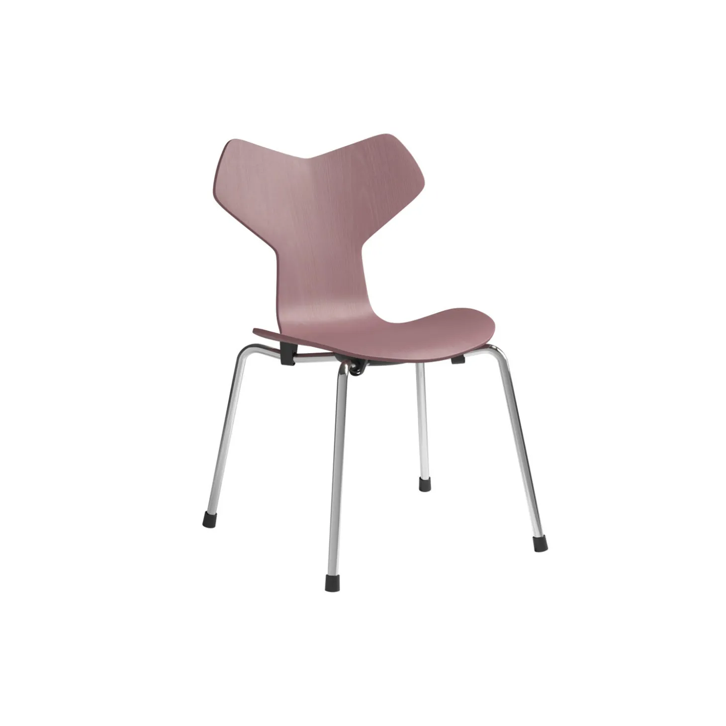 Grand Prix™ 3130 børnestol i farvet formpresset asketræsfinér med stel i krom fra Fritz Hansen. Farve: wild rose. Mål: H: 61 x B: 40 x D: 42 cm. Siddehøjde: 34 cm. Design: Arne Jacobsen.
