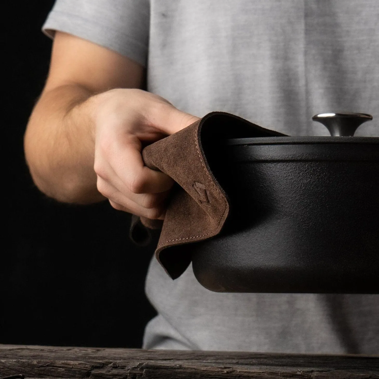 Håndsyede grydelapper i vegetabilsk garvet ruskind, designet til sikker håndtering af varme emner. Grydelapperne holder i mange år – og udvikler charme med tiden, som de bruges, fordi materialet patinerer. God varmebeskyttelse er et ‘must’ i ethvert køkken, så varme bradepander eller gryder let kan flyttes. Takket være stropperne, kan grydelapperne hænges op, så du har dem lige ved hånden, næste gang der skal tages brød ud af ovnen. Pleje: Grydelapperne vil med tiden få en fin patina, afhængigt af hvordan du bruger dem. Snavs efter brug kan fjernes med en blød børste. Undgå rengøring med vand.