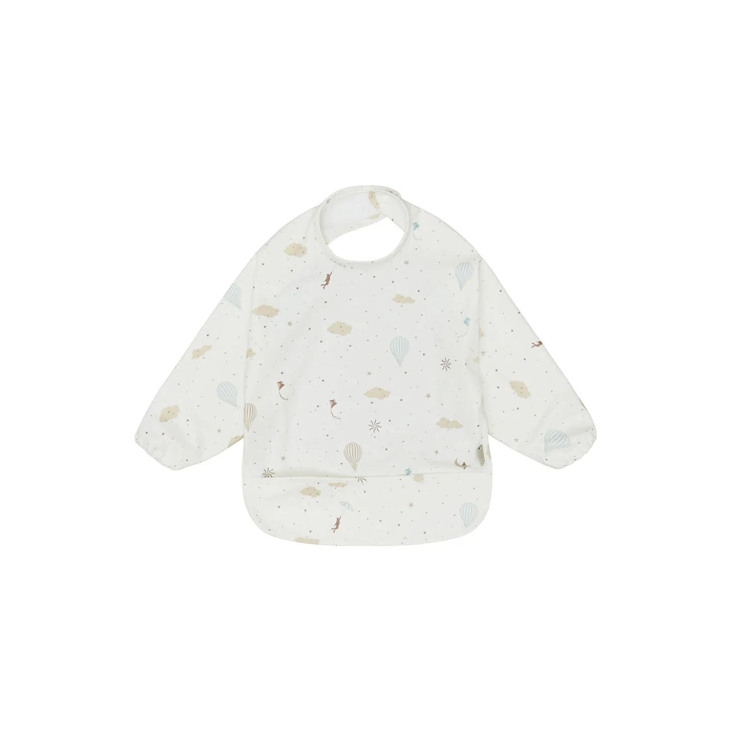 Heldækkende Hagesmæk med lange ærmer og en praktisk lomme. Perfekt både til måltider og kunstnerisk udfoldelse, så du ikke behøver at skifte tøj eller bekymre dig om pletter og stænk. Hagesmæk i hvide og brune nuancer.