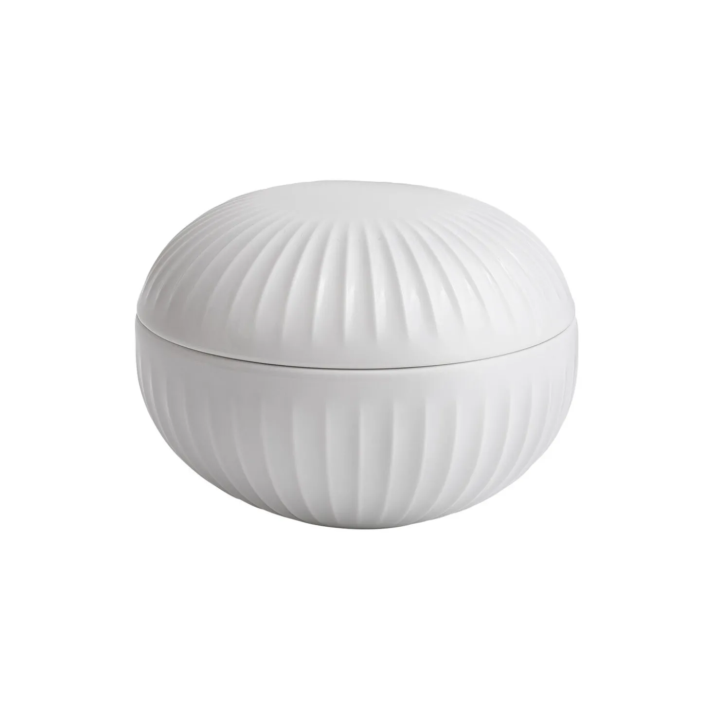 Denne Kähler-bonbonniere er en del af den klassiske Hammershøi-serie, designet i samarbejde med den danske designer Hans-Christian Bauer. Serien er kendetegnet ved sine fine, elegante riller, som giver keramikken et helt unikt udtryk. Brug den smukke bonbonniere som dekorativ skål på bordet eller som lågkrukke på badeværelset, i entréen eller i soveværelset.