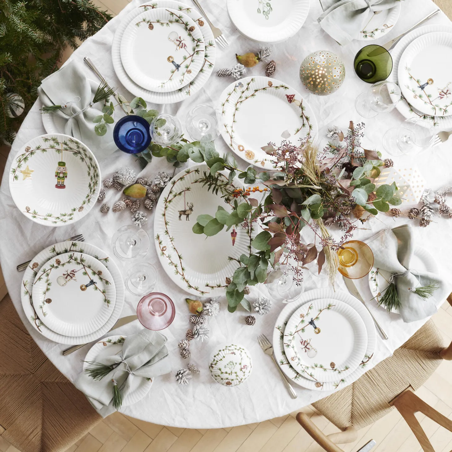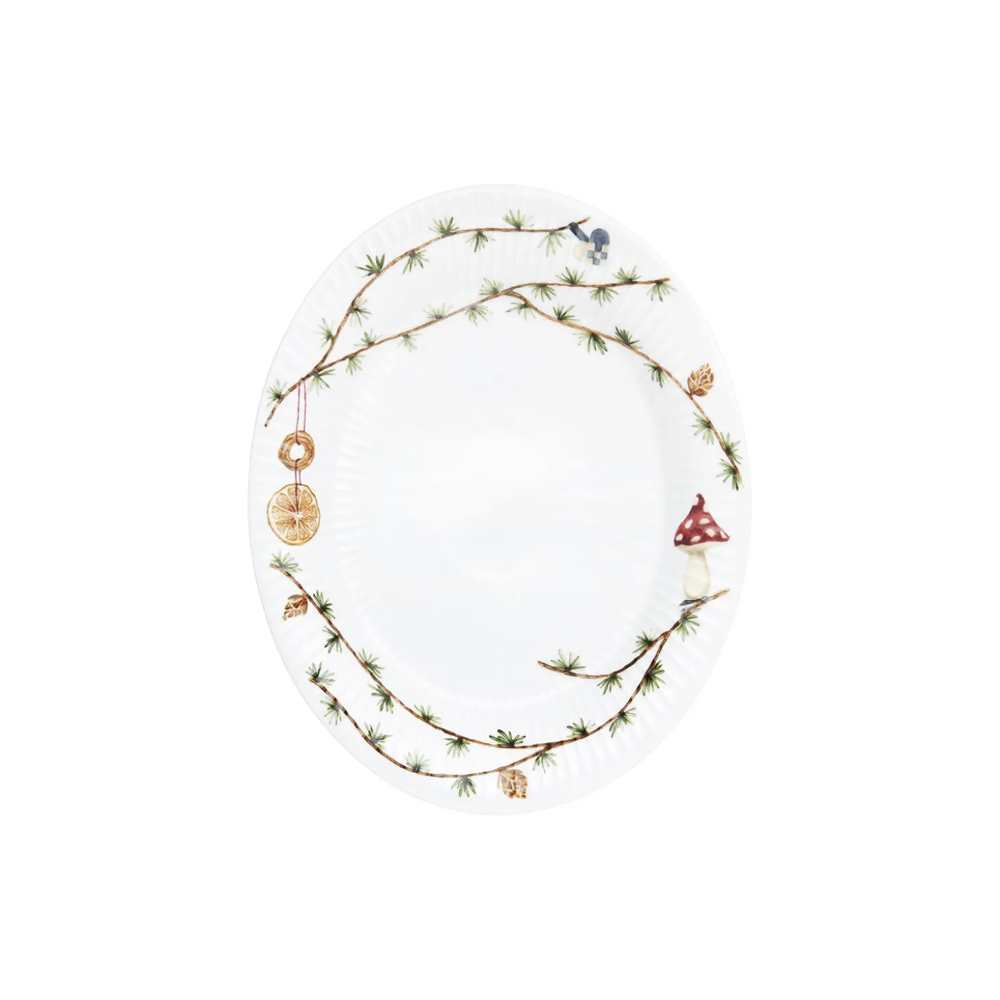 Hammershøi Christmas byder julen velkommen med en række nye illustrationer på udvalgte dele af det populære julestel. De fine, detaljerede julemotiver er skabt af kunstneren Rikke Jacobsen, som med sin karakteristiske streg fortæller små historier med bl.a. kræmmerhuse, engle, valnødder, fugle, kogler og stjerner. Brug det smukke, ovale Hammershøi Christmas bordfad til alle julens fester – sammen med matchende Hammershøi Christmas-tallerkener eller i et miks med klassiske, hvide Hammershøi-tallerkener. Bordfadet fås også i en større variant på 27 x 34 cm. Glæd dig også over Rikke Jacobsens nye illustrationer på vaser, skåle, krus og julekugler i Hammershøi Christmas-serien. Det ovale Hammershøi Christmas bordfad har 2 års brudgaranti.