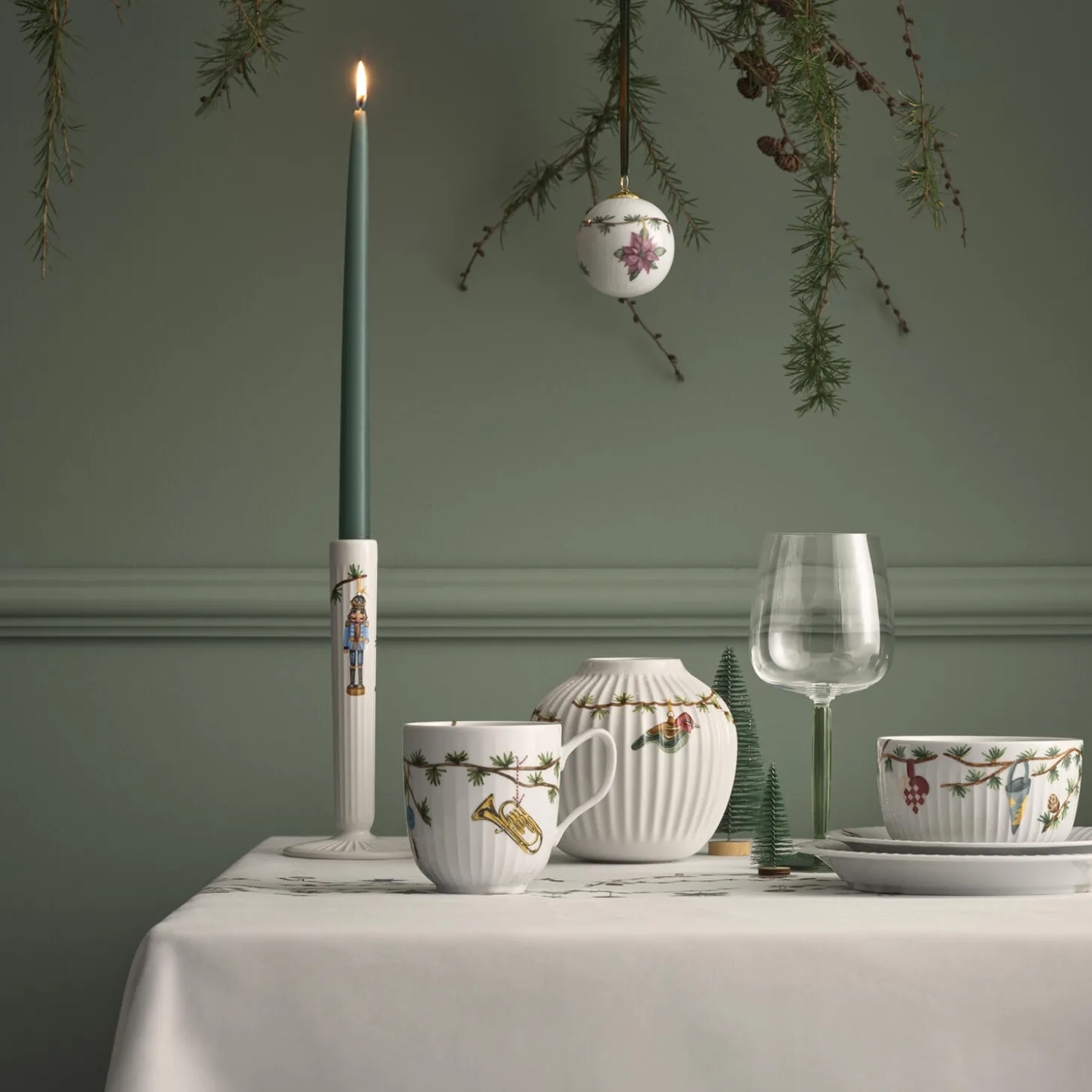 Hammershøi Christmas byder julen velkommen med en række nye illustrationer på udvalgte dele af det populære julestel. De fine, detaljerede julemotiver er skabt af kunstneren Rikke Jacobsen, som med sin karakteristiske streg fortæller små historier med bl.a. kræmmerhuse, engle, valnødder, fugle, kogler og stjerner. Brug den smukke Hammershøi Christmas-vase til blomster på julens borde eller som en fin juledekoration i sig selv. Fås også i en mindre variant på 10,5 cm. Glæd dig også over Rikke Jacobsens nye illustrationer på bordfade, saucekander, skåle, krus og julekugler i Hammershøi Christimas-serien.
