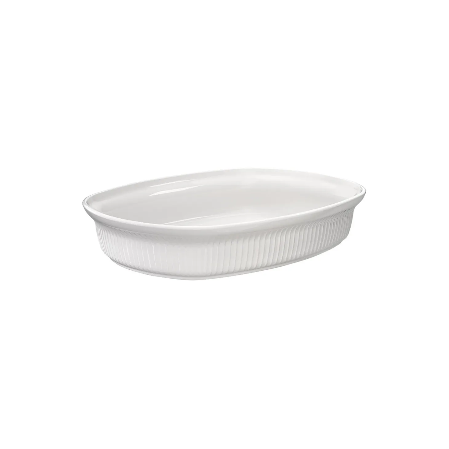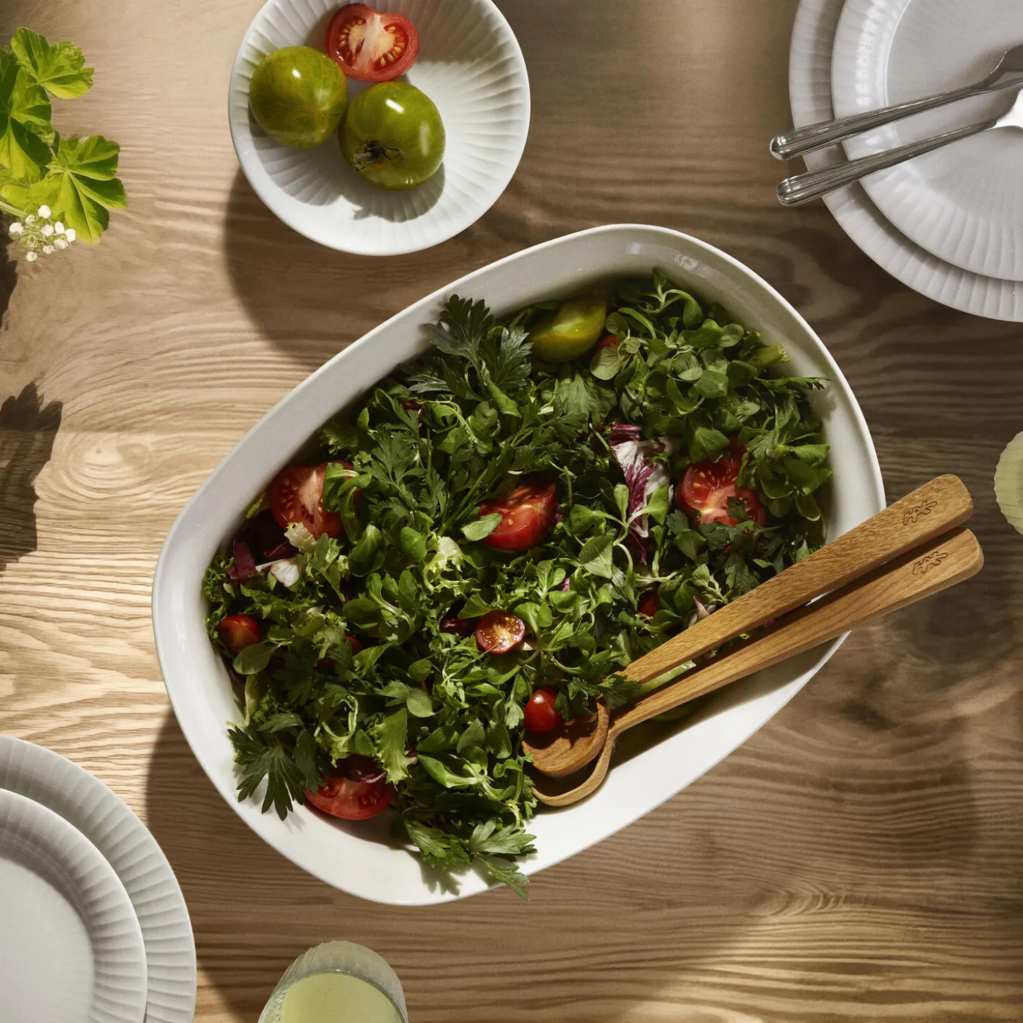 Elegant tilberedning og servering i en uundværlig klassiker. Fornyelse og autenticitet har altid været kodeord hos Kähler, og netop det nye og det autentiske forenes i en tidløs elegance i Kählers ovale ovnfaste Hammershøi-fade, der sammen med resten af Hammershøi-stellet både ærer og refererer til Kählers historie og samtidig rammer tiden og ser frem. Hammershøi-serien har i sig selv fået ikonstatus og er i dag en moderne klassiker, der appellerer til en bred vifte af designinteresserede mennesker. Og på de ovnfaste Hammershøi-fade i kridhvid keramik finder du selvfølgelig også de rene, minimalistiske linjer og behagelige, runde former, der er seriens signatur og giver en tidløs elegance i tråd med den danske designtradition og Hammershøis designvisioner. Dette største fad i serien måler 39×29,5 cm og er perfekt til for eksempel hele familiens yndlingslasagne, mens seriens mindre fad på 32×24 cm nemt klarer en servering med ovnbagt laks plus tilbehør. Fadene er ideelle til både tilberedning og serveringer til hverdag og fest, hvor Hammershøi-seriens ikoniske riller skaber seriens på én gang klassiske og moderne udtryk – et udtryk, der nu på tiende år har vundet stor popularitet i både ind- og udland. De smukke fade vil være de nye brandvarme stjerner på spisebordet, og når de skal pakkes væk, er det naturligvis tænkt ind i designet, at det lille fad nemt og bekvemt kan sættes oven i det store.
