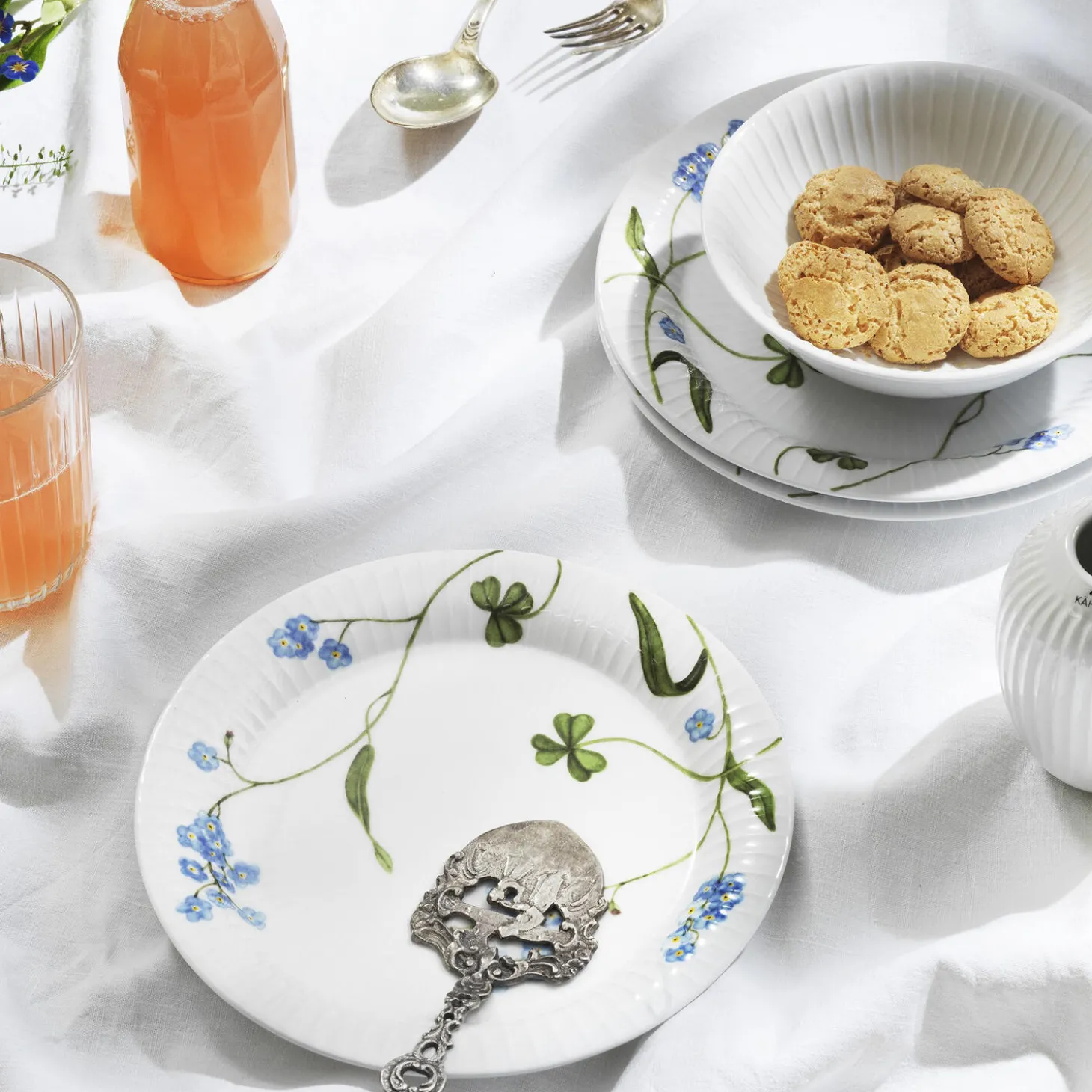 Med Hammershøi Summer fra Kähler kan du næsten mærke solens stråler og den lune sommervind, når du dækker op til kaffe og lidt lækkert på terrassen, altanen eller i sommerhuset. I delene med sommerbær finder du en tallerken med en diameter på 22 cm. Ligesom kruset og skålen i serien er den holdt i lyseblå nuancer og prydes af den yndige blomst forglemmigej, der er et symbol på kærlighed og venskab, og en sød blåmejse, der flyver ind og ud mellem blomsterne. Tallerkenen vil være et smukt supplement til de øvrige dele i serien – også på tværs af temaer – hvor den vil fuldende en glad og hyggelig sommerstemning på bordet, samtidig med at du nyder den autentiske nostalgi i Kählers håndlavede designtraditioner. Det er nemt at forestille sig tallerkenen som base for sommerklassikere som jordbærkage, en sprød salat fra haven eller en kartoffelmad med nye kartofler og masser af purløg. Motiverne er skabt af kunstner Rikke Jacobsen på Hammershøi-stellets eksisterende dele designet af Hans-Christian Bauer. Med sine smukke akvareller skaber hun detaljerige motiver, hvor flora og fauna spiller en gennemgående rolle og indfanger stemningen i naturen og årstiderne omkring os.