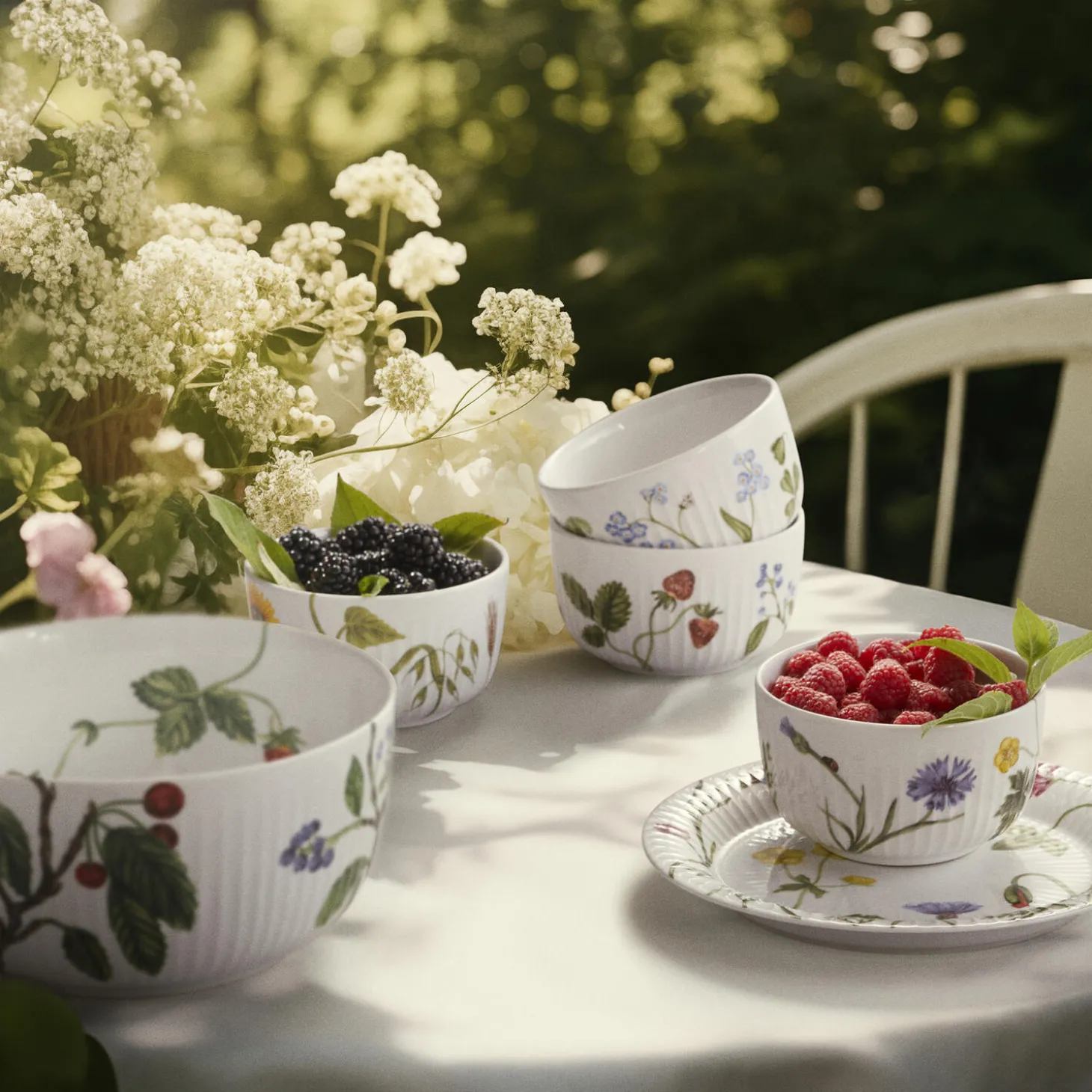 Blomstrende farver, former og følelsen af autentisk sommerstemning. Med Hammershøi Summer fra Kähler kan du næsten mærke solens stråler og den lune sommervind, når du dækker op til kaffe og lidt lækkert på terrassen, altanen eller i sommerhuset. Hammershøi Summer er inspireret af den danske sommers eventyrlige former, farver og følelser, og til 2025-sæsonen har en buket af de smukkeste engblomster fundet vej til den populære serie. Hammershøi Summer-frokosttallerkenen prydet med engblomsttemaet måler 22 cm i diameter og er perfekt til sommerens store kolde bord, uanset om du inviterer til årets fest eller blot ønsker at skabe masser af autentisk sommerhygge på bordet og rundtomkring i boligen. Med Hammershøi Summer og engenes blomster er vi med til at bekendtgøre, at sommeren er over os, ligesom engblomsterne kan minde os om at nyde nuet med deres mangfoldige blomstring, der tit ligger som et tæppe over engen, alt imens de lover atter at blomstre igen de kommende år. Engblomsttemaet er malet på samme måde som de andre temaer i Hammershøi Summer-serien, hvor planter og blomster nærmest bevæger sig uvilkårligt hen over de klassiske riller på de hvide keramikdele. Det er som om de nærmest vokser op, ja, næsten danser hen over porcelænet med deres forskellige asymmetriske retninger. Har du allerede andre dele i Hammershøi Summer-serien, vil tallerkenen været et smukt supplement til de øvrige temaer og fuldende en glad og hyggelig sommerstemning på bordet, samtidig med at du nyder den autentiske nostalgi i Kählers håndlavede designtraditioner. Motiverne er skabt af kunstner Rikke Jacobsen på Hammershøi-stellets eksisterende dele designet af Hans-Christian Bauer. Med sine smukke akvareller skaber hun detaljerige motiver, hvor flora og fauna spiller en gennemgående rolle og indfanger stemningen i naturen og årstiderne omkring os.