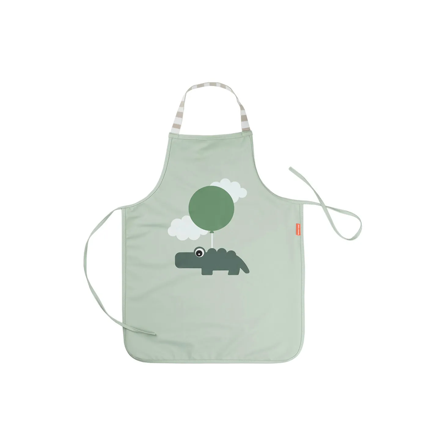 • Børneforklæde med Croco og Happy clouds-tema • Den vandtætte overflade gør det let at rengøre og beskytter dit barns tøj • Elastisk i nakken gør det muligt for småbørn selv at tage forklædet på og af • Velegnet til børn i forskellige aldre • Perfekt til bagning, madlavning, familiemiddage eller kreative aktiviteter • Sej grøn farve med Happy clouds tema og et print med Croco