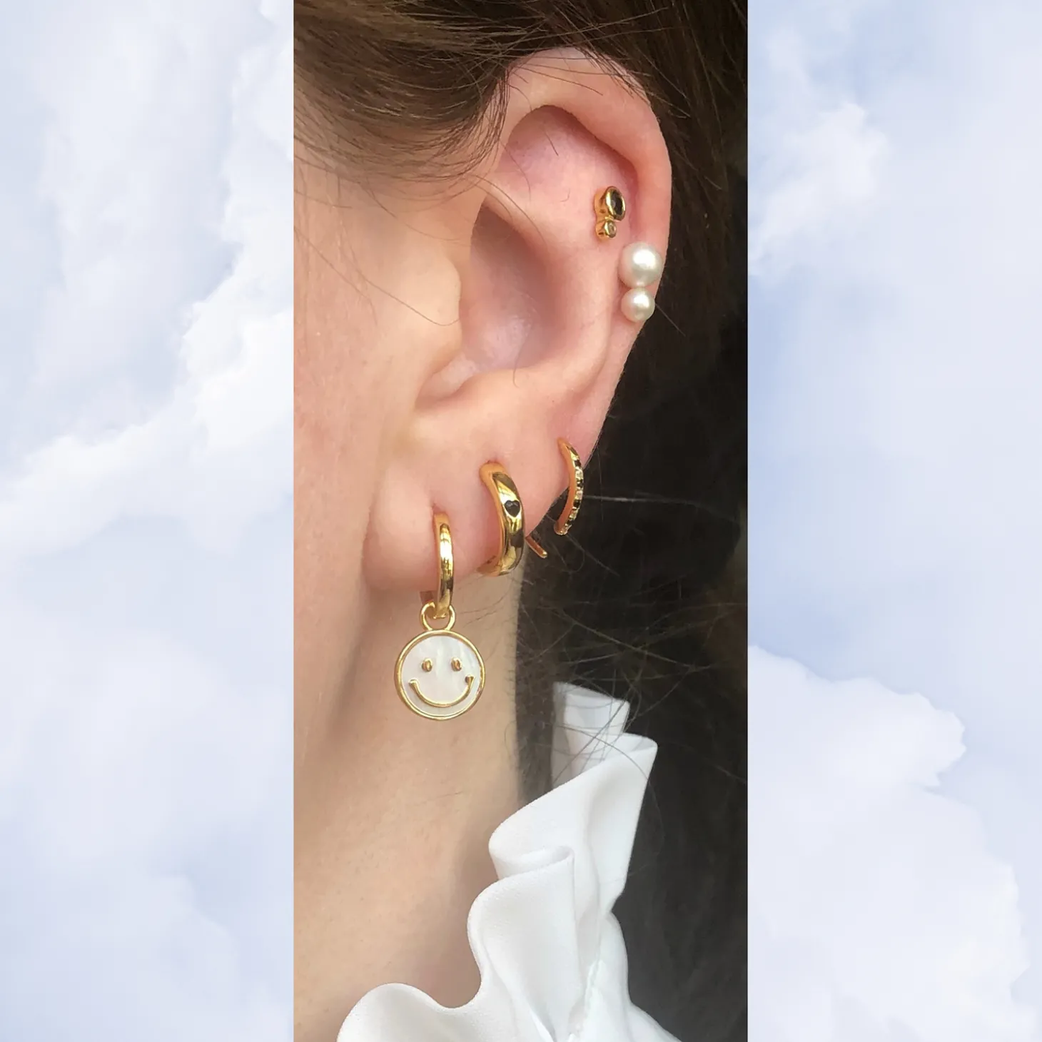 Chunky huggie ørering med sort hjerteformet sten. Sælges enkeltvis.