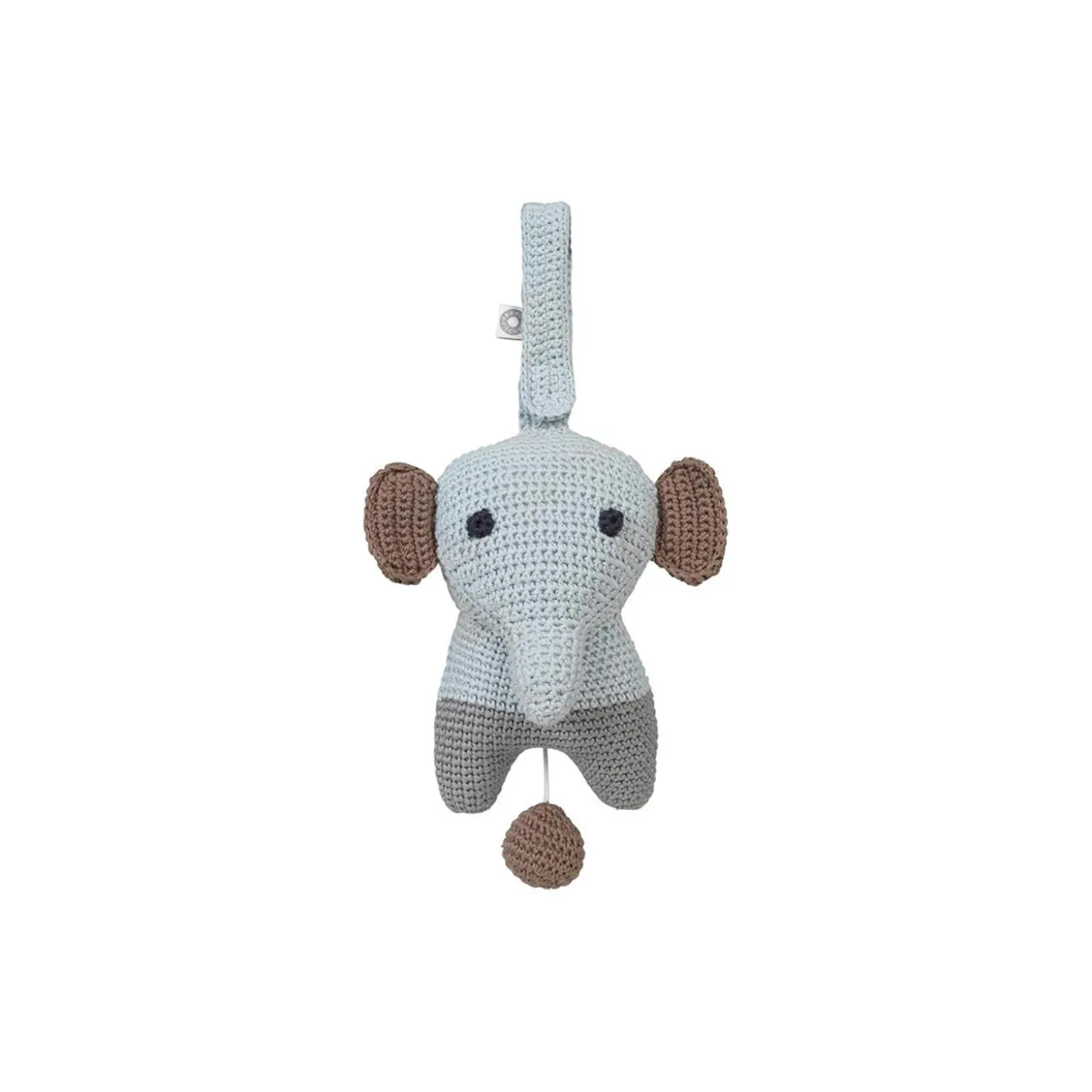 Hella elefant musikdyr i 100% økologisk bomuld med fyld af 100% majsfibre fra FRANCK & FISCHER. Farve: grey. Mål: H: 18 cm.