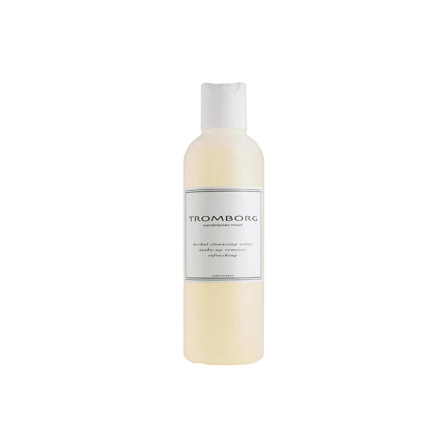 Herbal Cleansing Water er en olie- og alkoholfri makeupfjerner, der samtidig forfrisker og fugter ansigtet. De udvalgte urter humle, kamille, melisse, røllike og fennikel virker beroligende på huden og renser effektivt. Rose er brugt som et naturligt fugtaktiv, og et nøje sammensat vitaminkompleks virker sammen med sandeltræ antibakterielt og rensende og modvirker irritation. Dette gør den også særdeles anvendelig til selv sensitiv hud, akne m.m.Brug den morgen og aften som daglig vaskerutine, da den ud over at fjerne makeup også plejer og fugter. Fjerner makeup, sved, forurening, døde hudceller og affaldsstoffer. Et skvæt på en vatrondel er rigeligt.