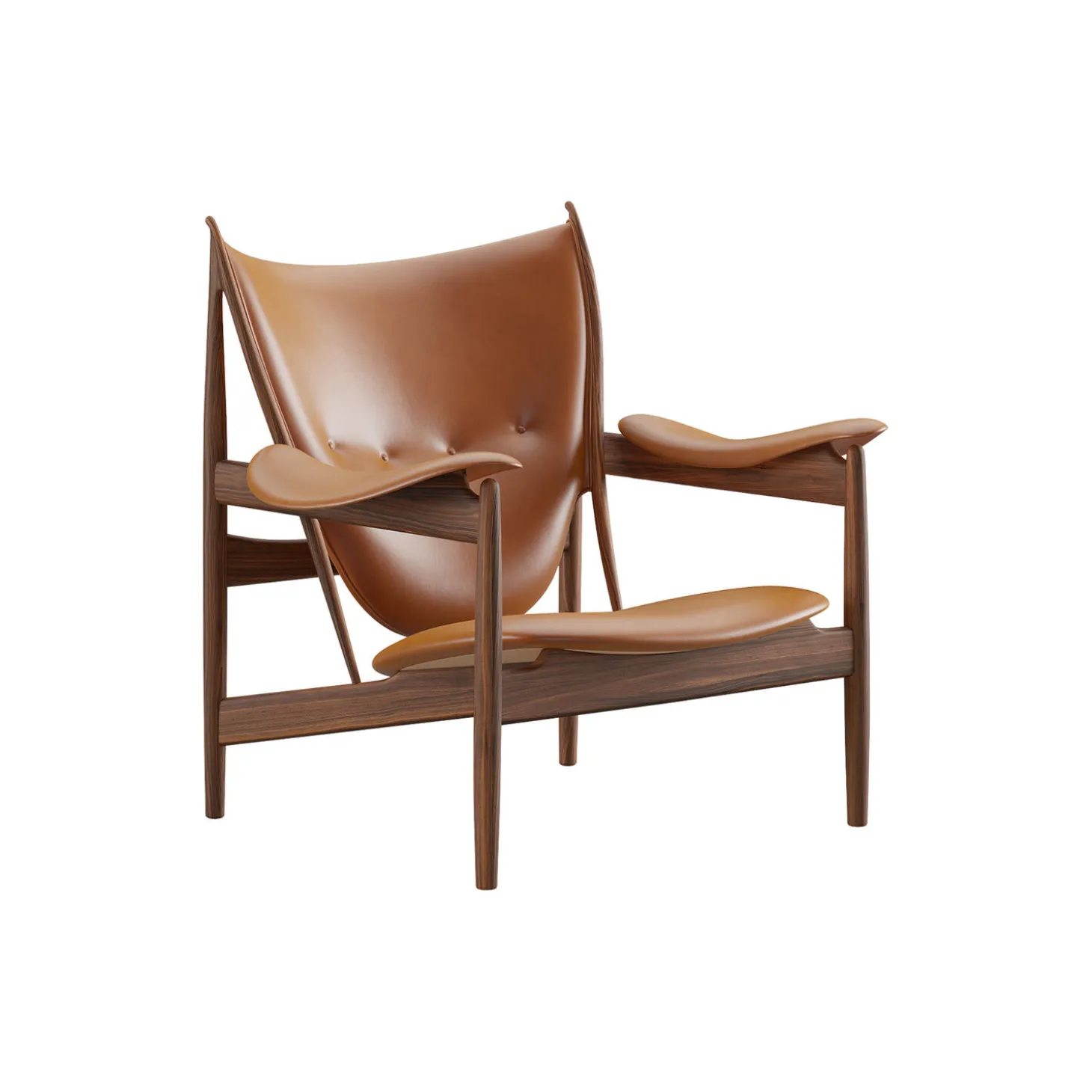 Høvdingestol i Nevada anilinlæder af CAMO Leathers med stel i olieret valnød fra House of Finn Juhl™. Farve: cognac. Mål: H: 92,5 x B: 100 x D: 88 cm. Siddehøjde: 34,5 cm. Design: Finn Juhl.