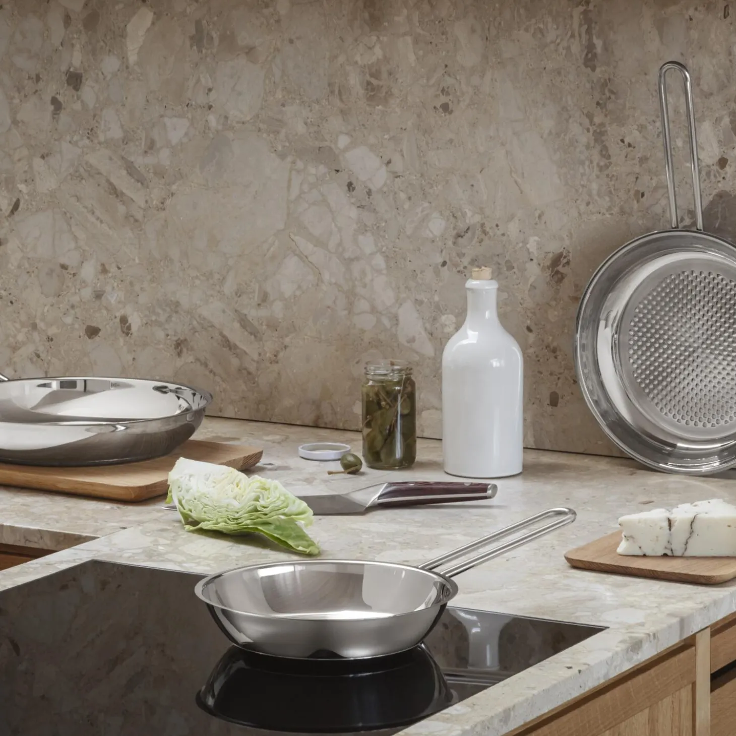 Stegepanden med ‘vaflet’ bund har et unikt mønster, der er med til at forhindre maden i at brænde sig fast. Den vaflede bundflade holder fedtstoffet fordelt under maden og danner en naturlig slippeevne. Vi anbefaler, at panden varmes op ved middel varme efter at have fået tilført fedtstof. Skru derefter lidt op for temperaturen, læg maden på panden og juster til den ønskede tilberedningstemperatur. Så snart der er dannet en stegeskorpe, kan maden flyttes rundt på panden og vendes.