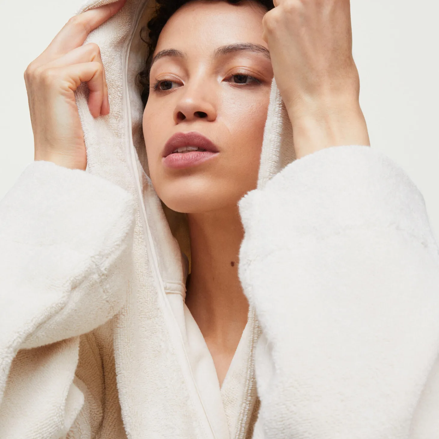 Hooded Bathrobe Terry, pure ecru