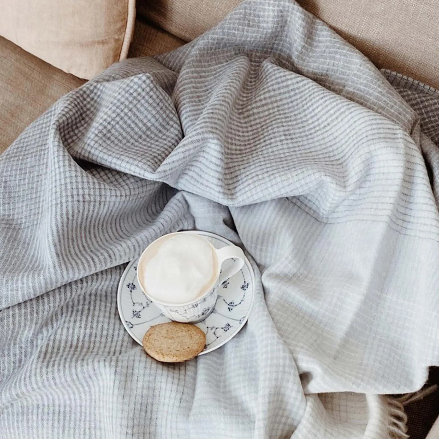 Hvor hav og himmel mødes. Horizon plaidens design skifter fra lys til mørk på en elegant, smuk og naturlig måde. Et utroligt smukt stykke håndværk – et sandt vidnesbyrd om en peruviansk vævers talent. Horizon kollektionen består af både plaider og puder i en række utrolig smukke farver.Horizon plaiden er fremstillet af 100% genanvendte fibre.Plaiden er vævet af fantastisk blød genanvendt alpakauld og fåreuld. At væve tekstiler af alpakauld er en tradition i Peru, der går tilbage til Inka-tiden. Alpakafibre er blødere, mere slidstærke og varmere end andre naturfibre. Plaiden fnugger minimalt og bevarer det flotte udtryk i mange år frem. I plaiden er der anvendt 100% bæredygtige fibre. Elvang er fair trade certificeret på højeste niveau hos World Fair Trade Organization (WFTO). Det er en garanti for, at plaiden er fremstillet under ordentlige vilkår både for miljø, mennesker og dyr.Materiale: 50% alpakauld, 40% fåreuld & 10% andre fiberVægt: ca. 560 gramStr.: 130×200 cmVi anbefaler rens