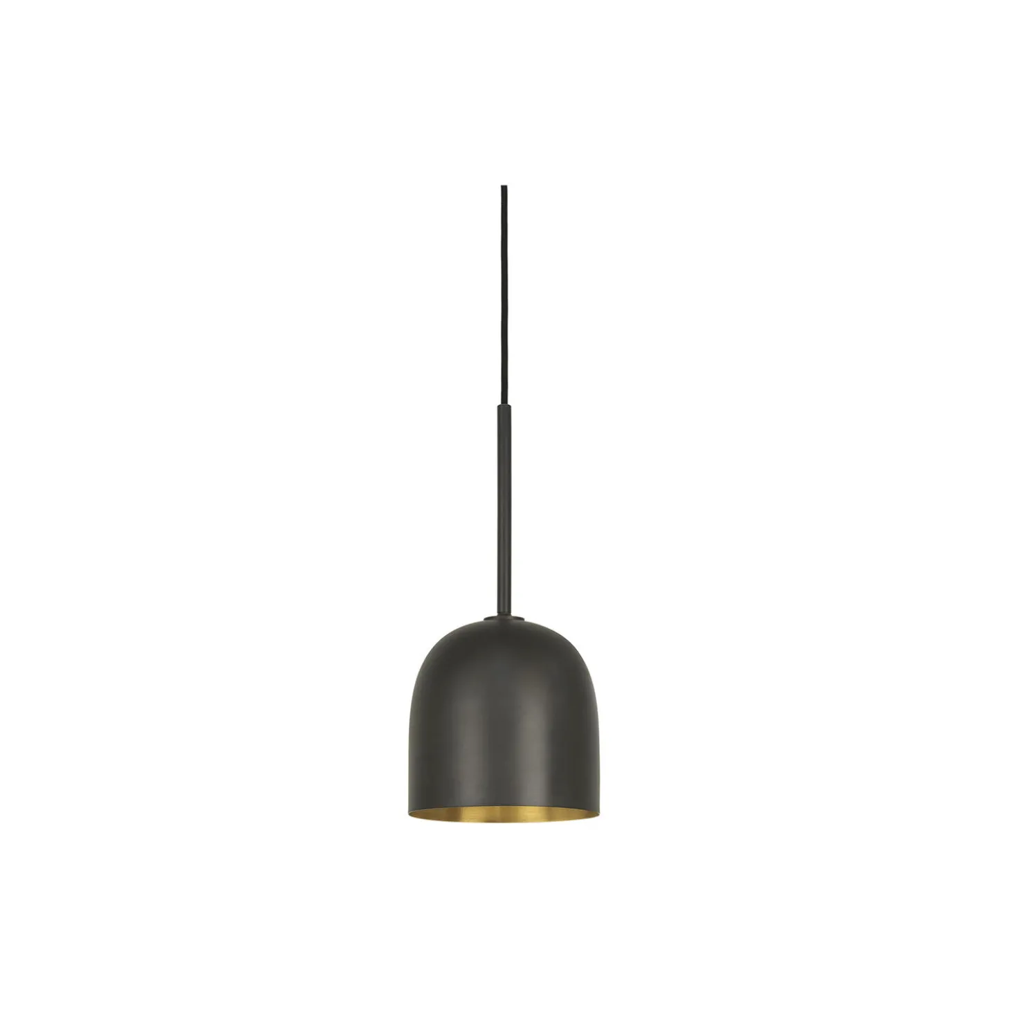 Howard Pendant i gunmetal og messing fra GUBI. Farve: gunmetal. Mål: H: 35,4 x Ø 16 cm. Lyskilde: 4-6W LED E14. Design: Space Copenhagen.