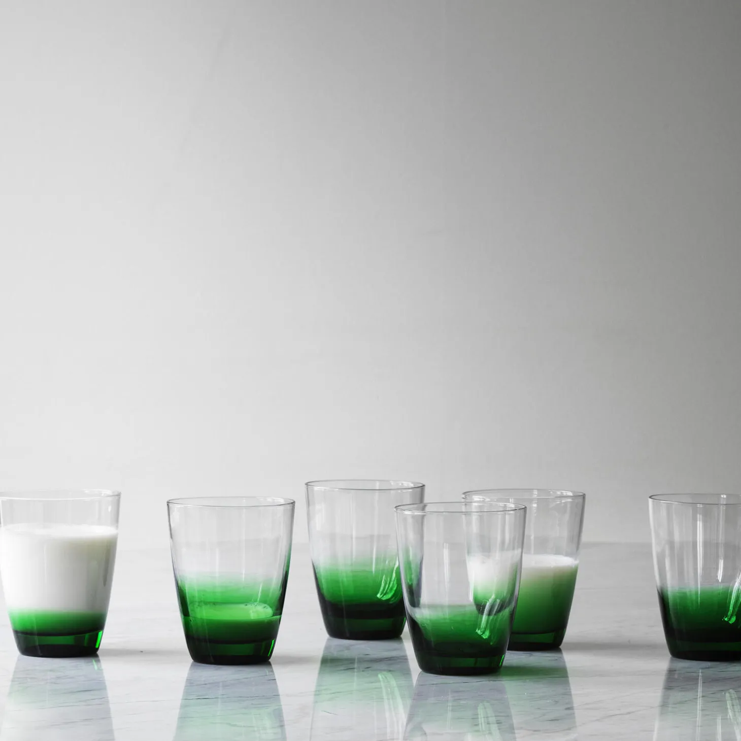 Hue Glass er et afrundet drikkeglas lavet af 100% mundblæst glas. Glasset karakteriseres af sit udtryksfulde farveelement, hvor bunden fremstår som var den dyppet i farve.