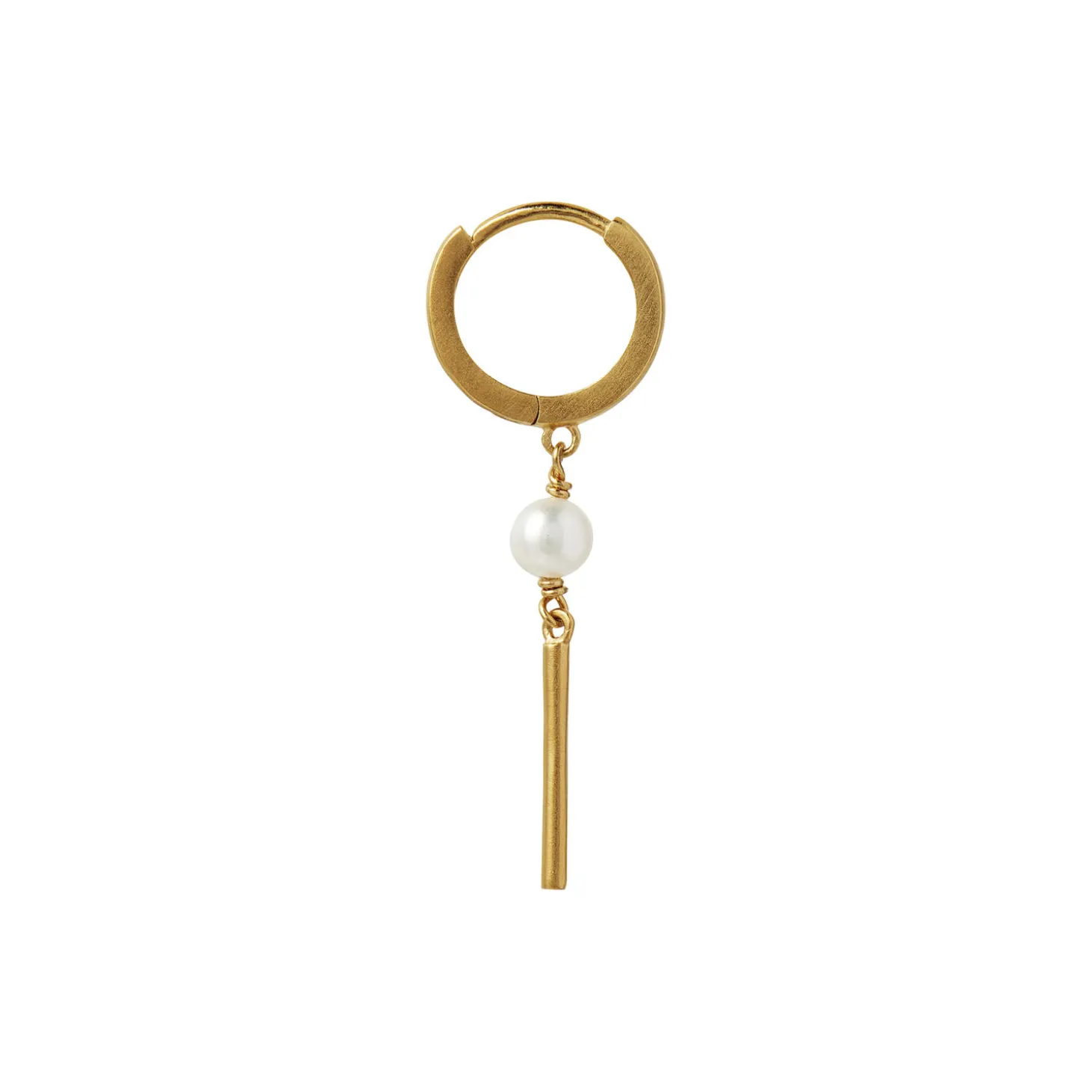 Skøn lille hoop med en dansende ferskvandsperle og forgyldt stav for enden.