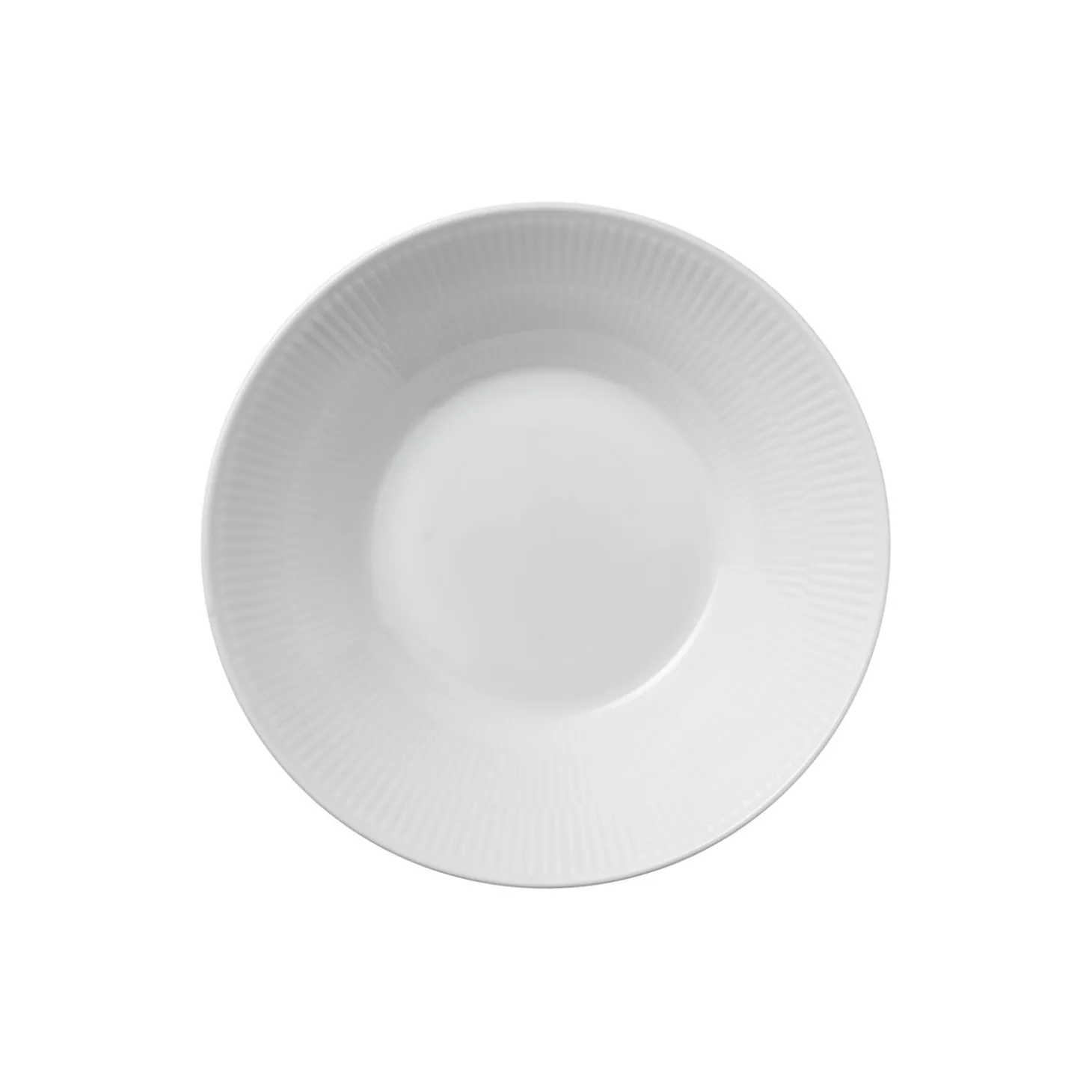 Hvid Riflet dyb tallerken i porcelæn fra Royal Copenhagen. Denne Hvid Riflet Dyb Tallerken på 24 cm har et kantløst design, der forstærker stellets enkle udtryk. Den dybe tallerkens håndlavede rifler komplimenteres af det ubemalede porcelæn og bringer en klassisk taktilitet og et rent udtryk til ethvert bord. Størrelsen på tallerkenen gør den alsidig i brug, og den vil være et yndet element på spisebordet.