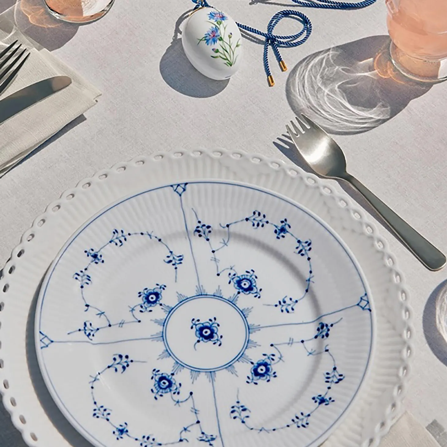 Hvid Riflet Helblonde Tallerken Ø 19 cm fra Royal Copenhagen.