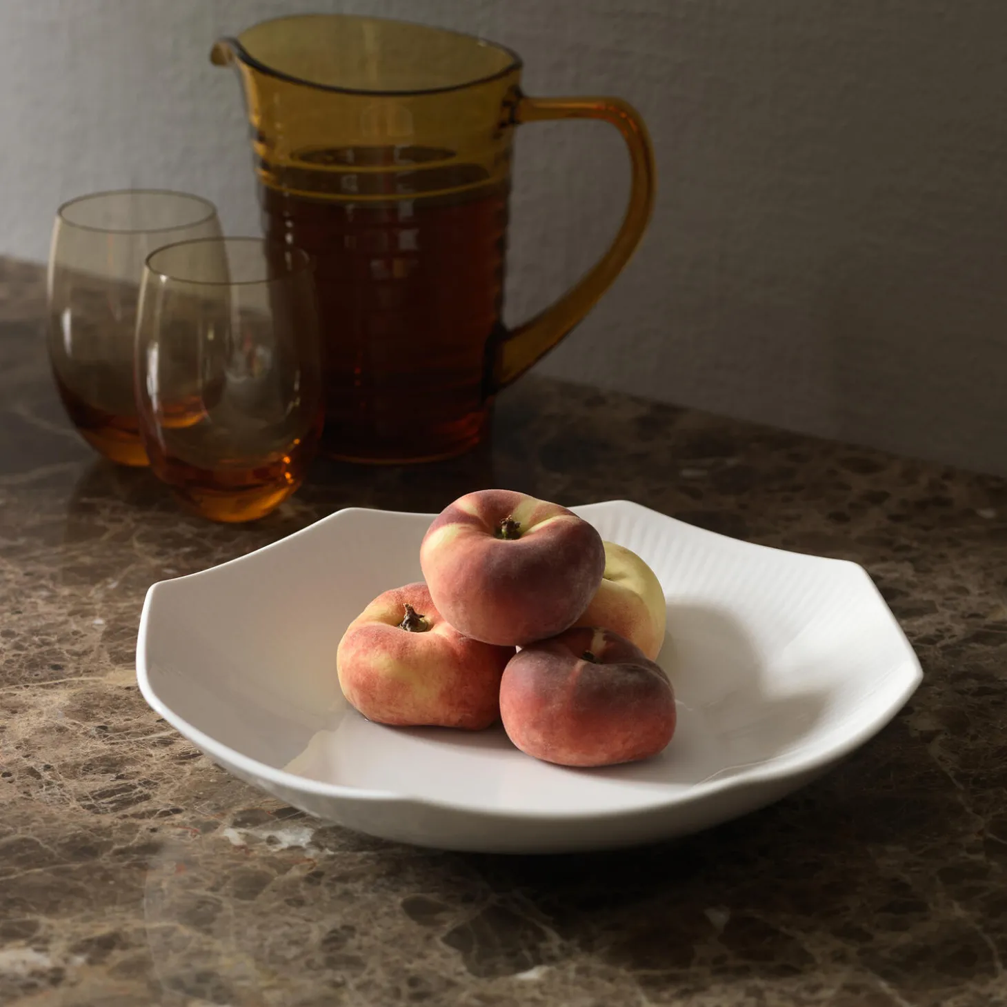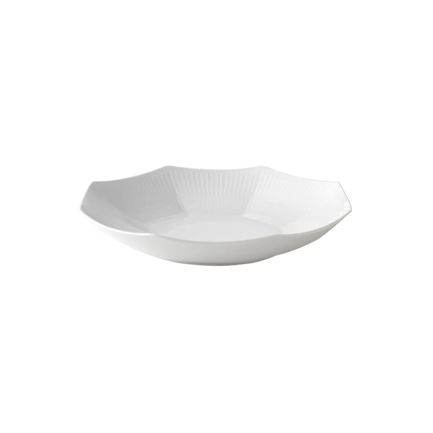Hvid Riflet skål buet form i porcelæn fra Royal Den helt særlige ottekantede form på denne Hvid Riflet Skål på 25 cm tilfører et overraskende element til en hver borddækning. Skålens kontemporære udtryk prydes af håndudskårne rifler, der skaber en levende taktilitet på det ubemalede porcelæn. Skålen kan bruges som en serveringsskål eller som et dekorativt element.