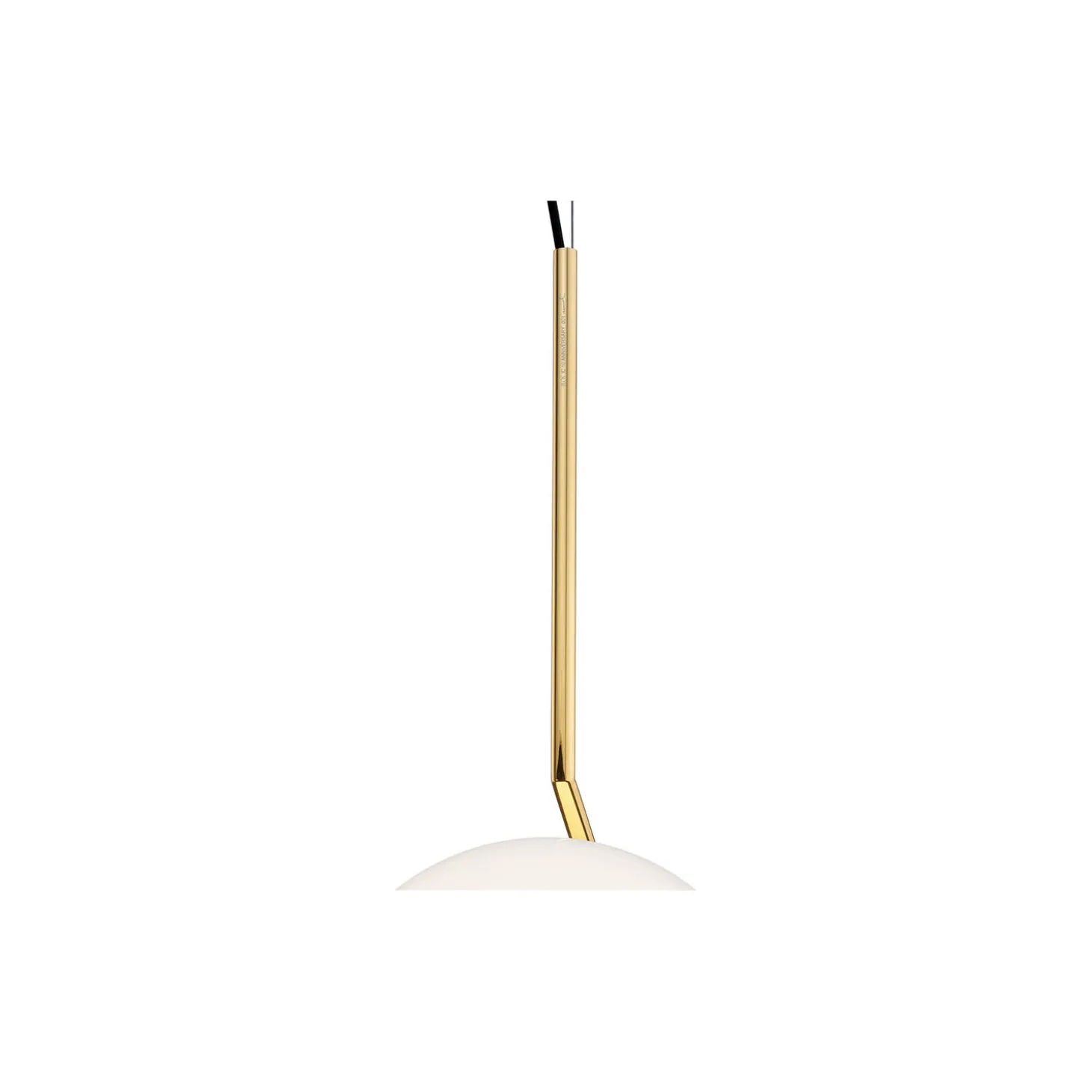 IC S3 Pendant 10 Anniversary in gold plate 24 carat frame and blown glass opal diffuser from FLOS. Colour: 24 carat gold. Design: Michael Anastassiades.