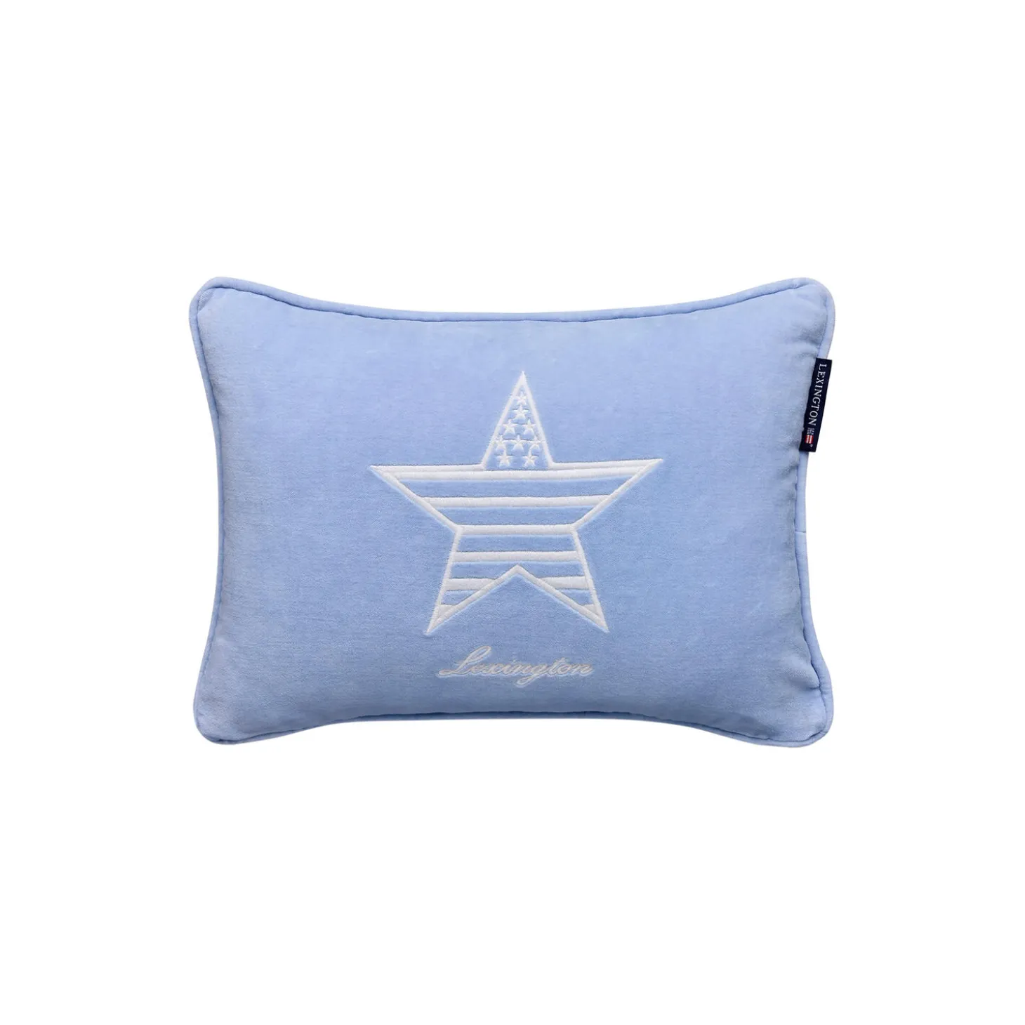 Denne 30 x 40 cm store pude i økologisk bomuldsfløjl er blød og lækker og perfekt til børn. Med et broderet Lexington-logo og matchende kantrør i selvstof giver den charme til ethvert rum. Inderpude medfølger. Fremstillet i Indien, Oeko Tex-certificeret.