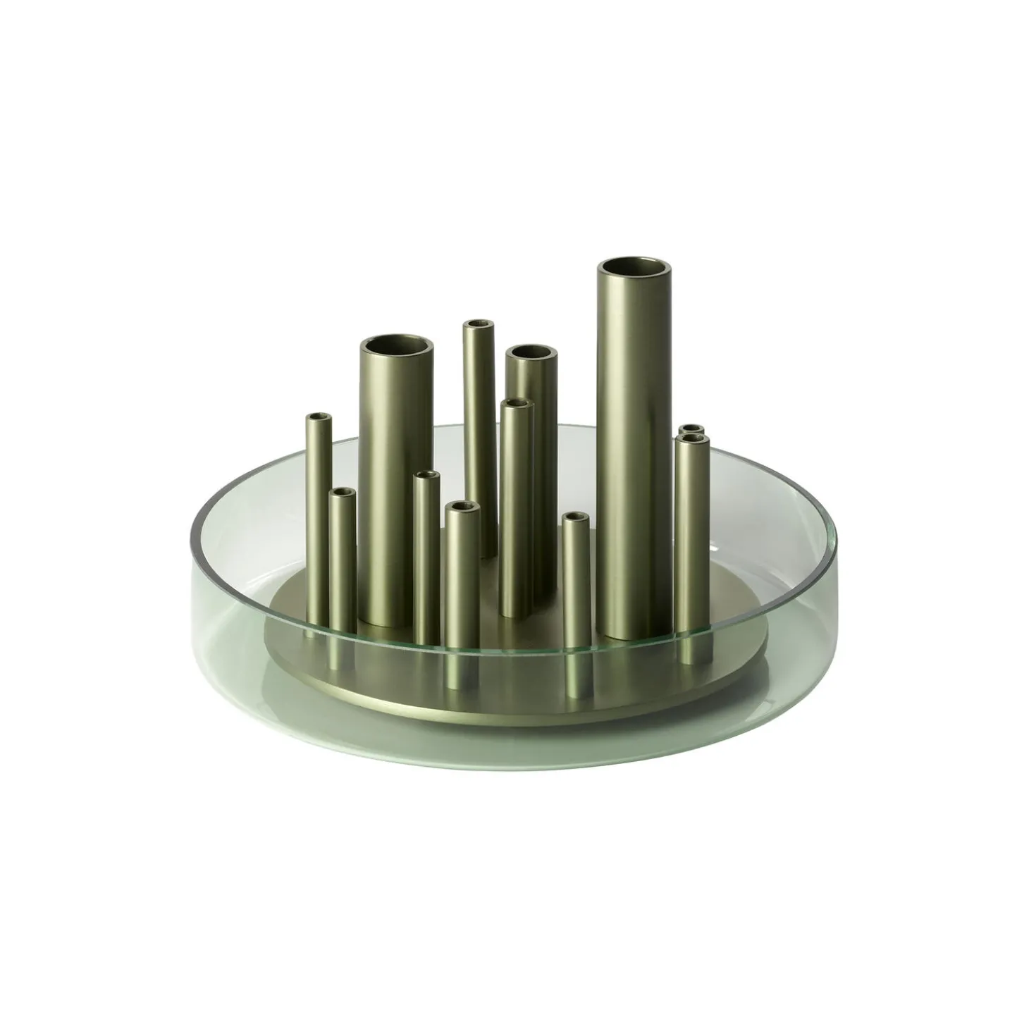 Ikeru™ vase low i metal og glas fra Fritz Hansen. Farve: forest green. Mål: H: 13,1 x Ø 19 cm.