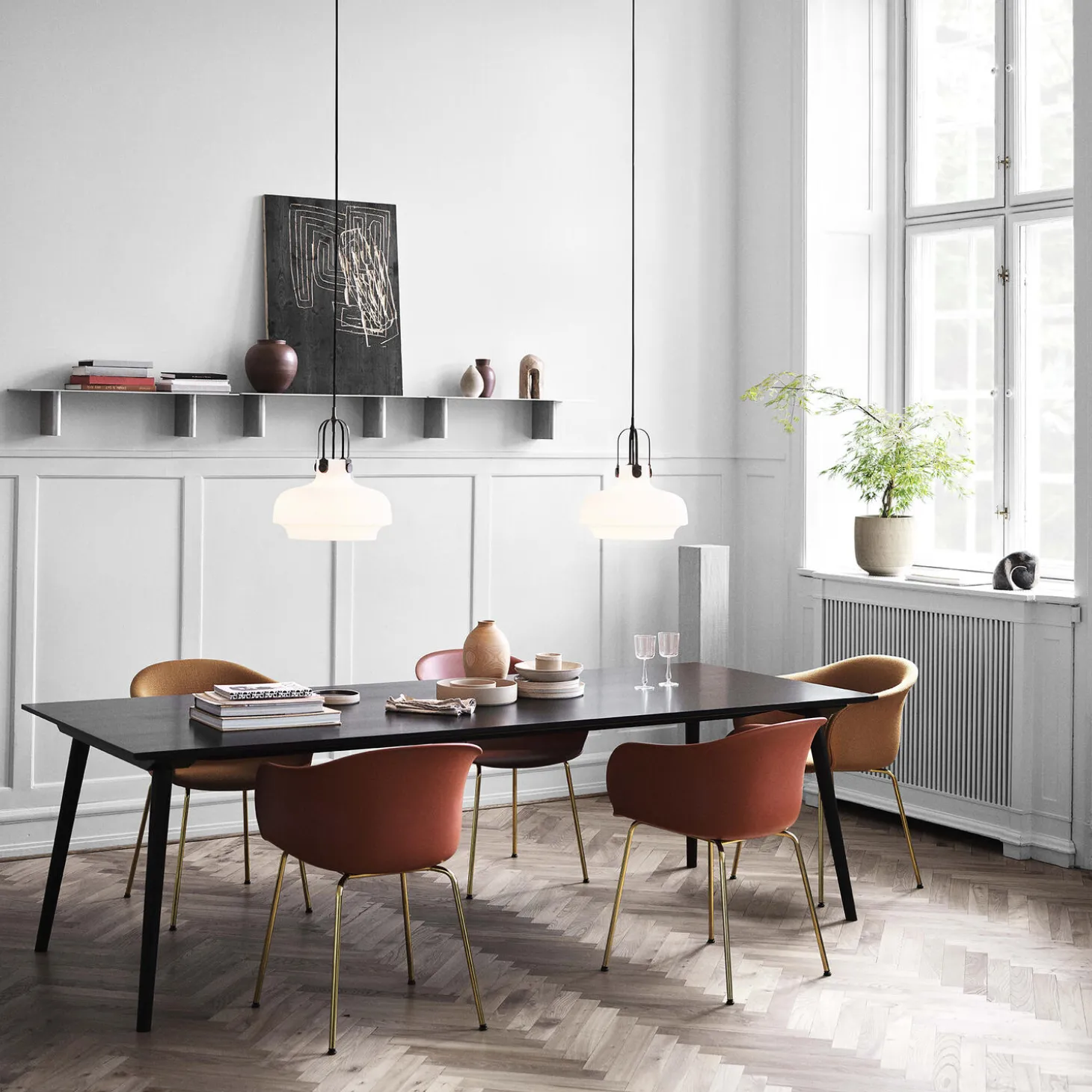In Between SK6 spisebord med bordplade i MDF og sortlakeret egetræsfinér samt stel i sortlakeret eg fra &Tradition. Farve: sortlakeret eg. Mål: H: 74 x B: 250 x D: 100 cm. Design: Sami Kallio.