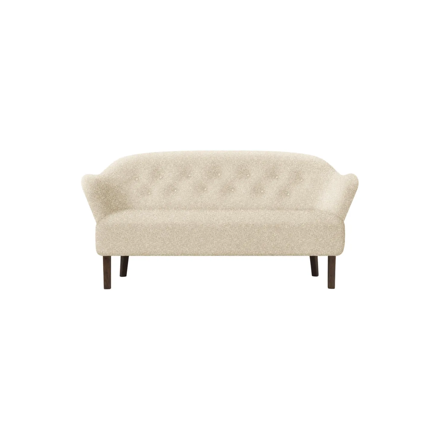 The Ingeborg Sofa is a beautiful and expressive 2.5-person lounge sofa originally designed in 1940 by Flemming Lassen. This charming and elegant sofa, named after Flemming Lassen’s mother, Ingeborg Winding, features characteristically curvy armrests, a buttoned back, and legs made from hardwood. The Ingeborg Sofa shares the same design expression as the recently launched lounge chair Ingeborg, forming a matching duo. The sofa’s elegant size and design make it beautiful from all angles, allowing you to place it anywhere in the room without taking up too much space. The elegant, curvy armrests add character to the design and give the impression of a warm embrace. Initially presented at the Cabinetmakers’ Guild Competition in 1940 at the Museum of Industrial Art in Copenhagen, the lounge sofa was originally designed for a new estate. Although it was occasionally spotted at different auctions, indicating a limited production, by Lassen is now pleased to reintroduce this beautiful and iconic design by Flemming Lassen.