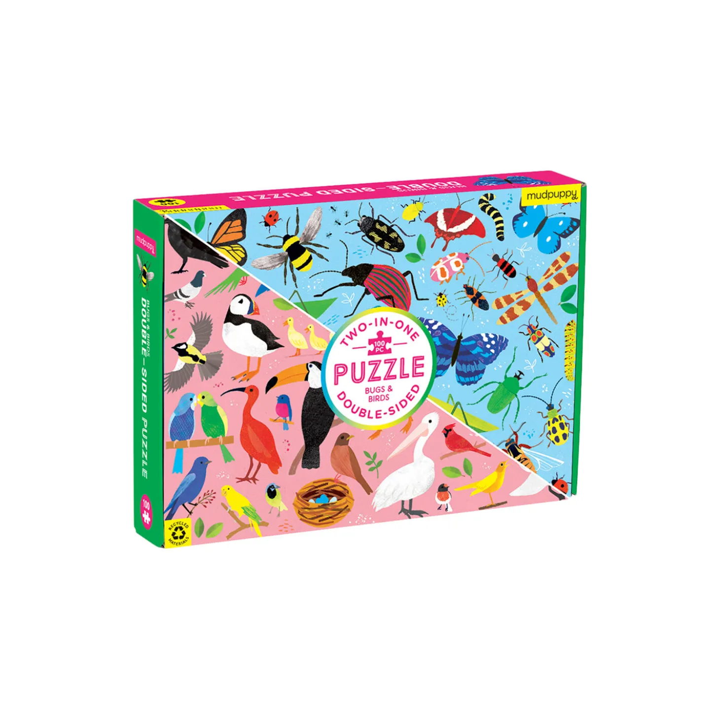 Insekter & fugle puslespil fra Mudpuppy. Mål: Samlet: 55×42 cm. Antal brikker: 100 stk.