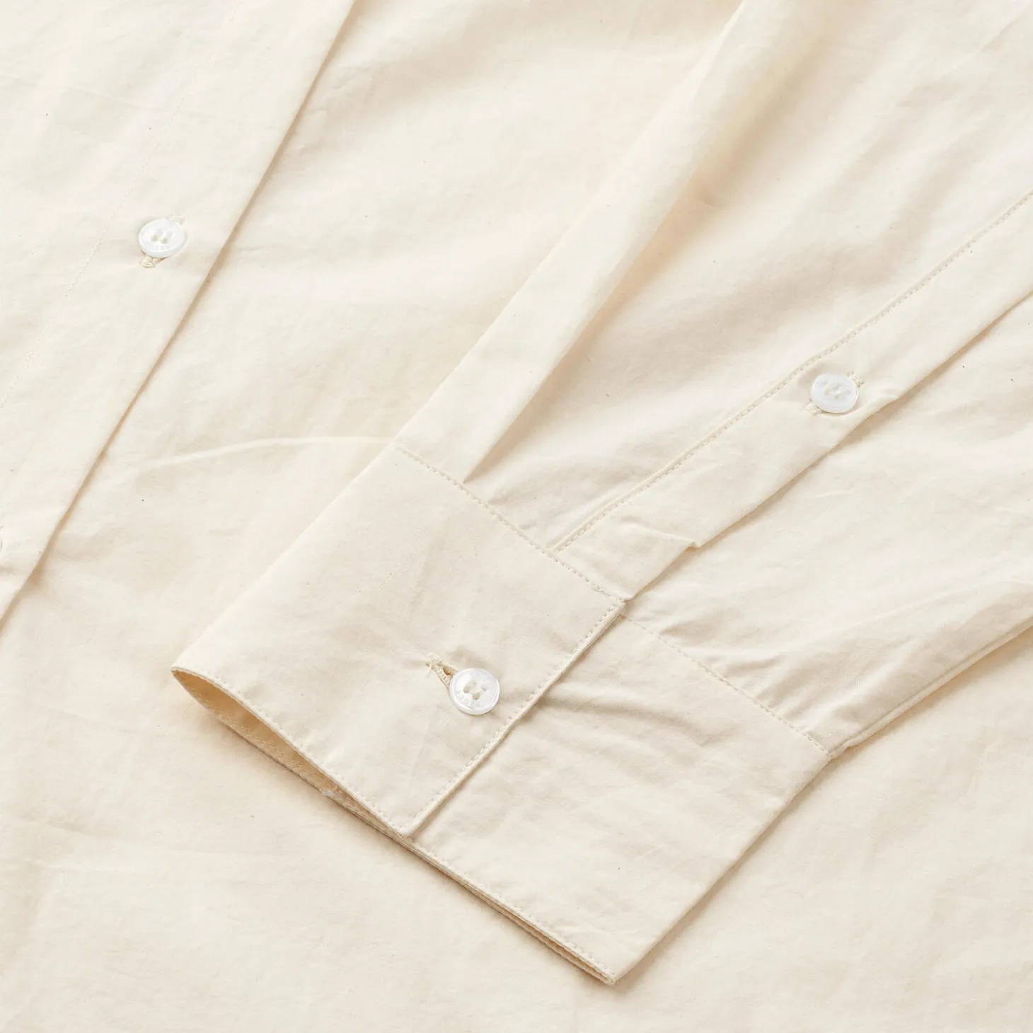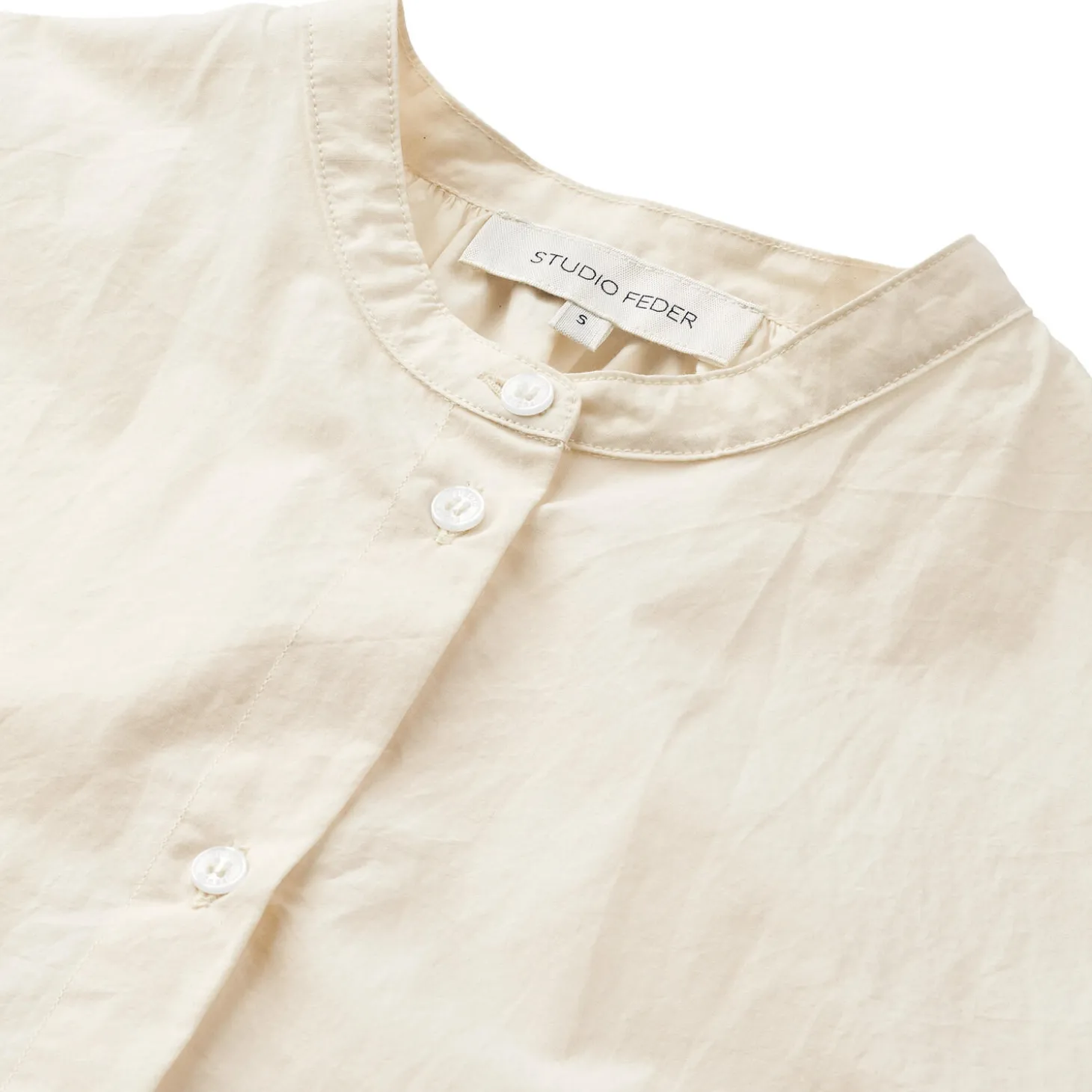 Skøn skjorte i GOTS-certificeret økologisk bomuld. Fin lille kinakrave og knaplukning foran samt knapper på manchetter på ærmerne. Løs rummelig pasform som giver et fint feminint udtryk til denne skjorte. Skøn til både shorts, nederdele og bukser i hele sæsonen.