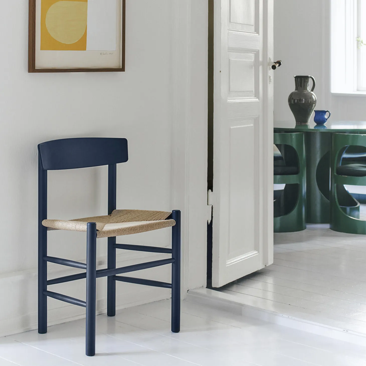- Materiale: lakeret bøg med sæde i papirgarn