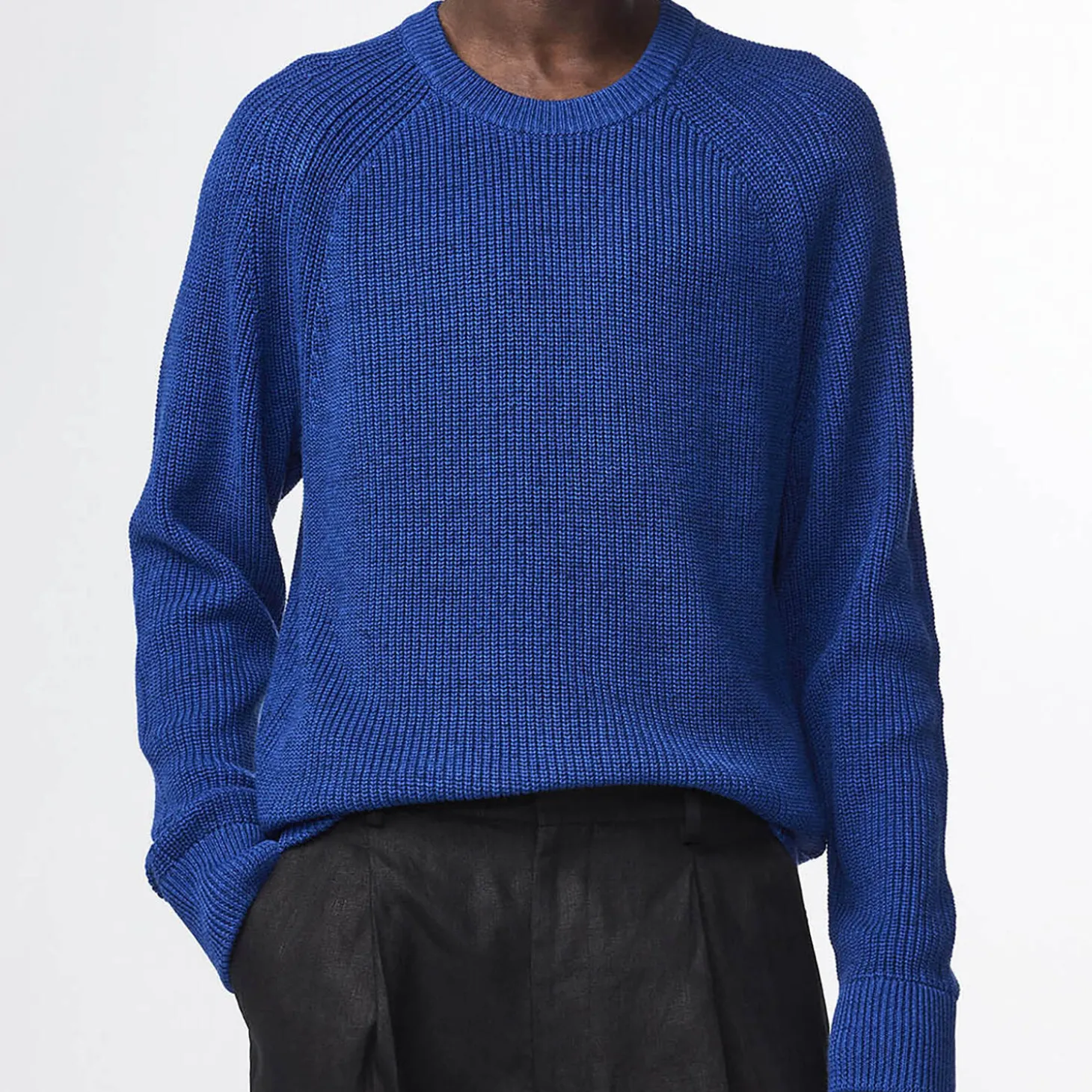 Crewneck crafted in a soft cotton knit in a half-cardigan stitch designed with a raglan sleeve.