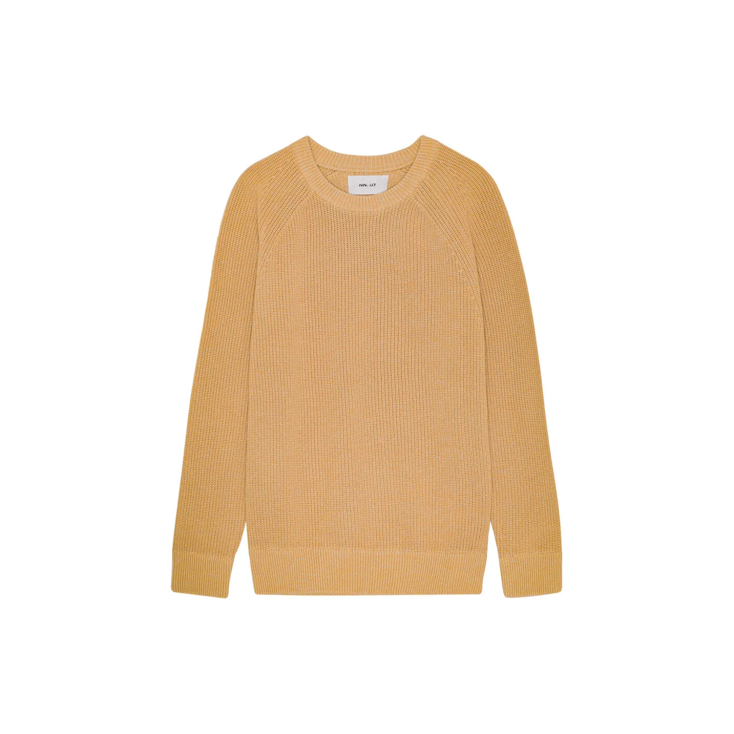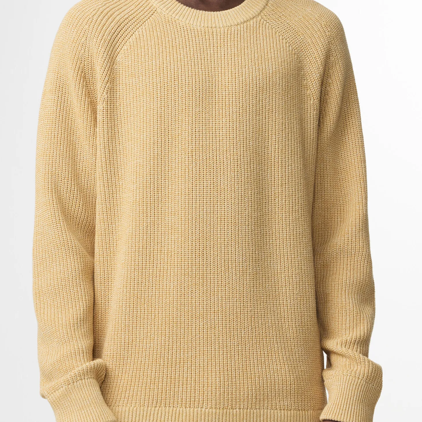 Crewneck crafted in a soft cotton knit in a half-cardigan stitch designed with a raglan sleeve.