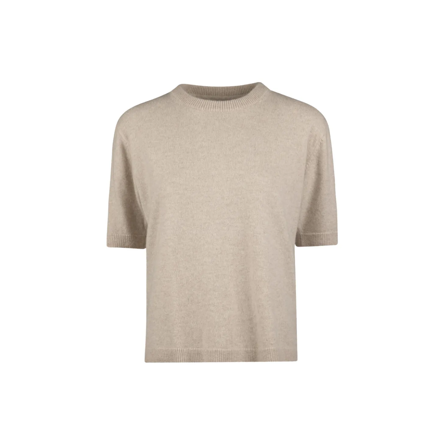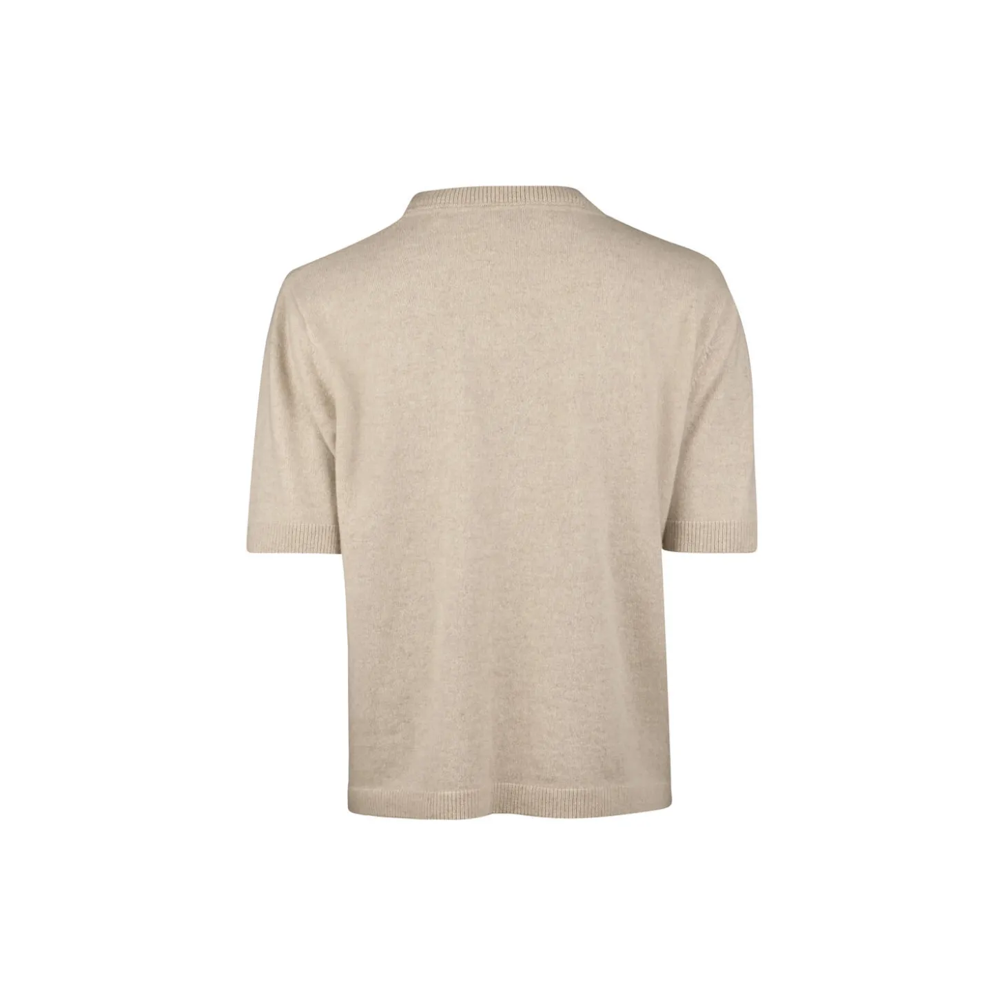 Denne strikkede top er fremstillet i kashmir og har korte ærmer, ribstrikket krave og kant forneden.