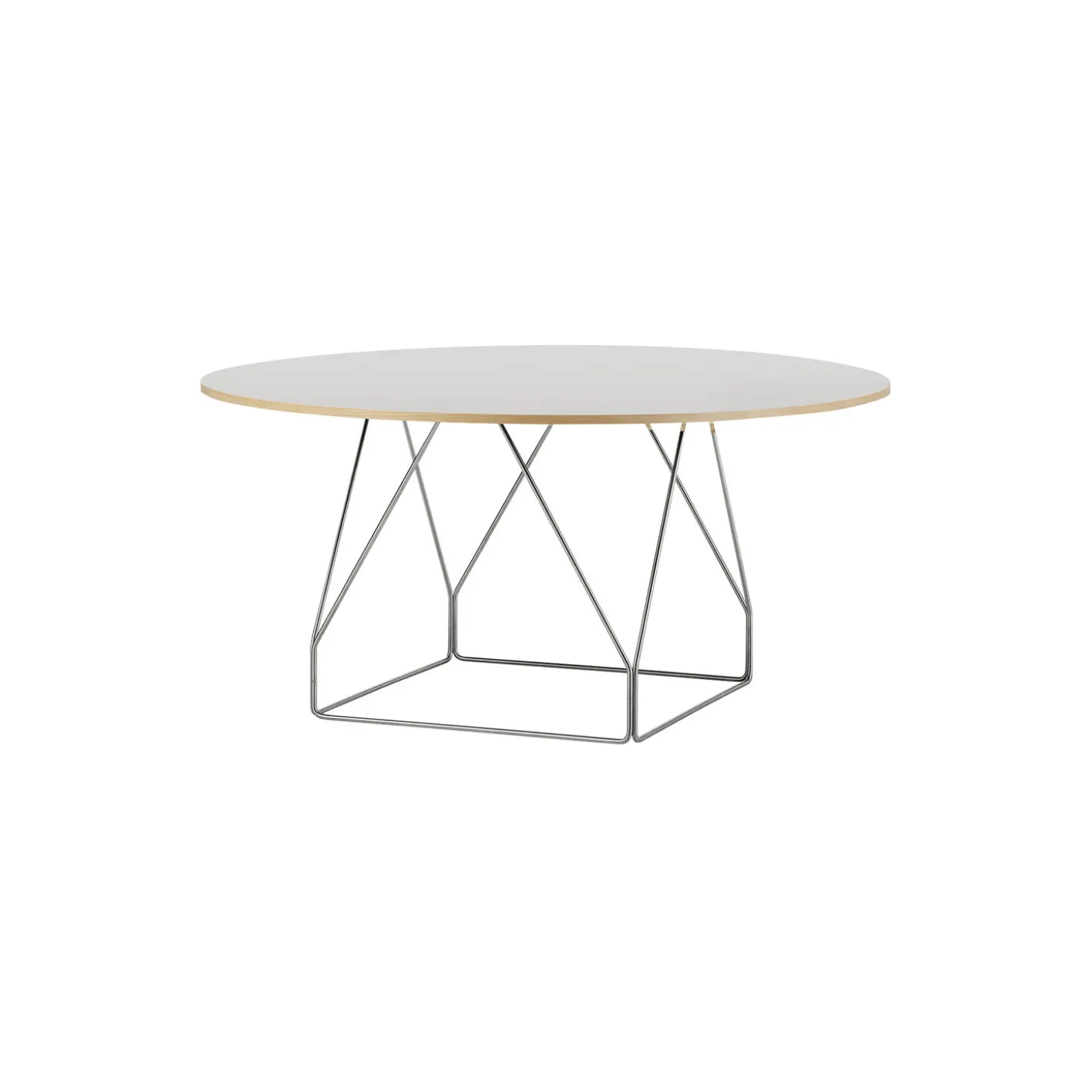 JG Table med bordplade i linoleum og stel i børstet rustfrit stål fra Fredericia. Farve: grey. Mål: H: 72 x Ø 140 cm. Design: Jørgen Gammelgaard.