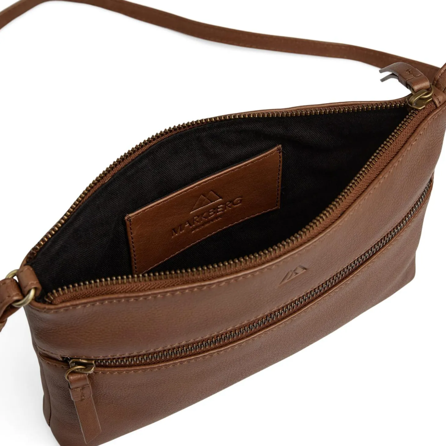 Jolie Crossbody Bag i Soft vintage fra Markberg er lavet i smukt blødt 100% kalveskind, med et unikt vintage-udseende. Den vintage finish opnås gennem en omhyggeligt håndlavet voksbehandling, der giver hver taske et rigt, tidløst look. Taskens hardware er i brushed gold og er nikkelfri. Tasken har en fin og brugbar bredformat størrelse, perfekt til hverdag eller festlige begivenheder. På taskens front har den en aflang lynlåslomme, med plads til dine mindste essentielle ting. Indeni har den ét rum, med plads til nøgler, mobil med mere. Tasken lukkes med lynlås. Taskens tynde læderstrop er justerbar og størrelsen på tasken er 16 cm x 25 cm x 3 cm. Taskens for er i 100% bomuld.