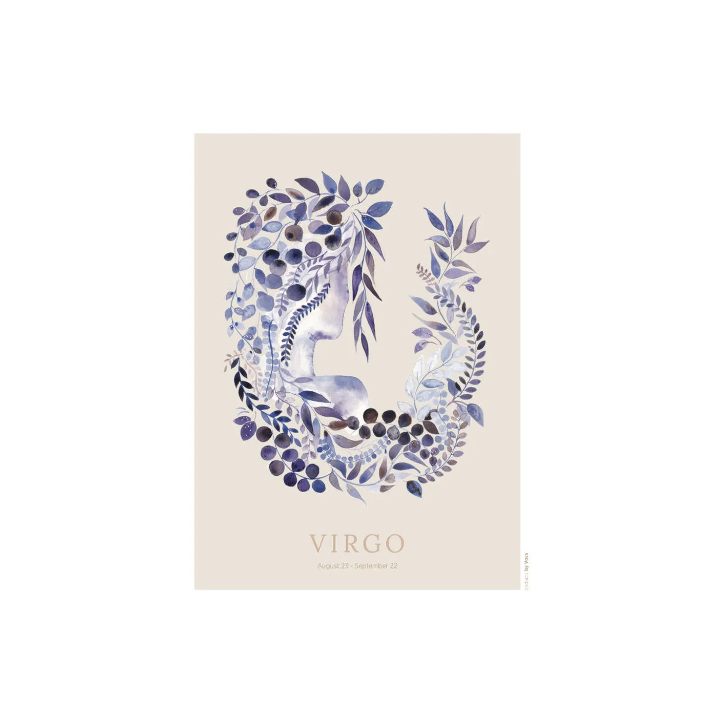 Jomfruen plakat fra All by Voss. Plakatdesign med grafik (tekst) og beige flade under motiv, med trykt hvidt passepartout. Originalen er scannet i høj opløsning for bedst muligt gengivelse. Produceret i Danmark.