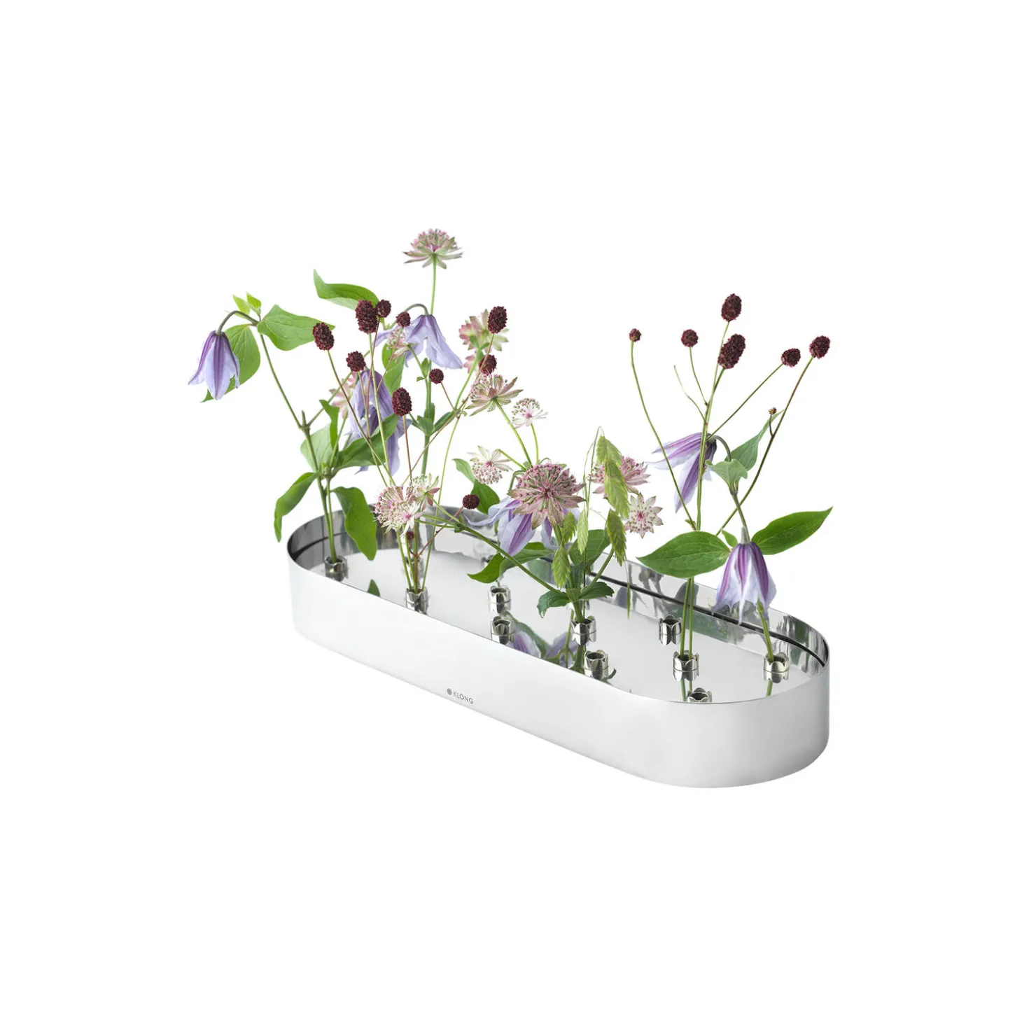 Jubel, by designer and florist Hanna Wendelbo, was designed with the goal to make it possible for anyone to easily be able to create a magnificent flower arrangement. Place Jubel on the set table with preferably a lower arrangement, or for example on a sideboard or on the window sill with a larger and higher arrangement. You can also get different expressions by turning the insert upside down as the two sides have different designs.