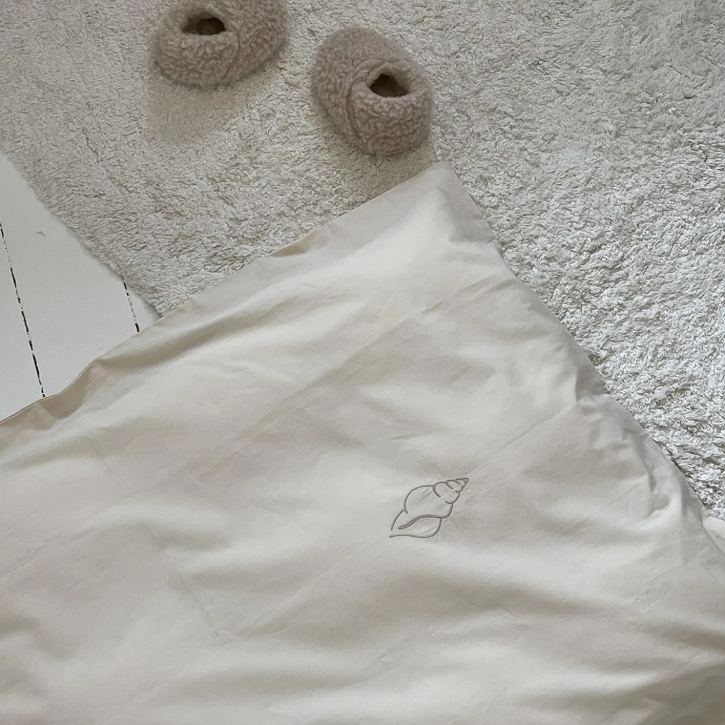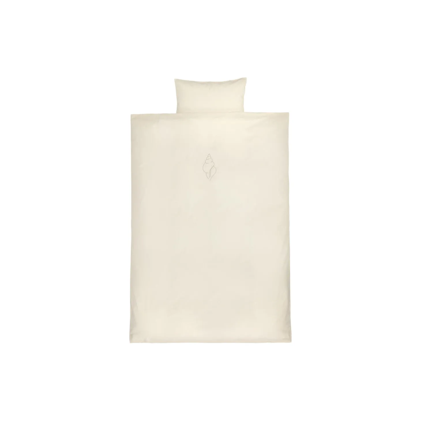 Dette økologiske juniorsengetøj fra We Are bitte er ikke kun æstetisk men også virkelig blødt. På dynebetrækket er der en smuk broderet konkylie.Sengetøjet er designet i Danmark og lavet af det blødeste økologiske bomuld.