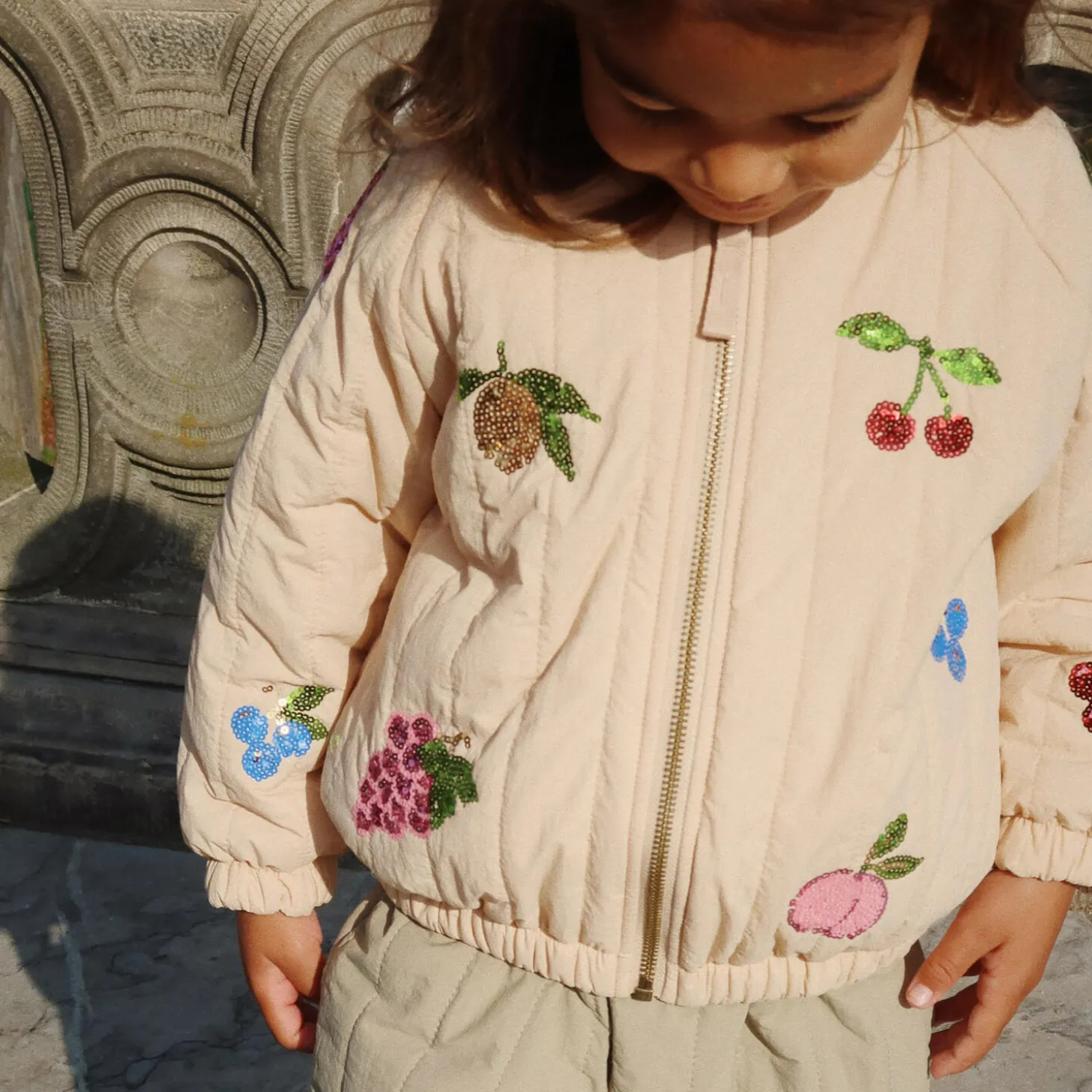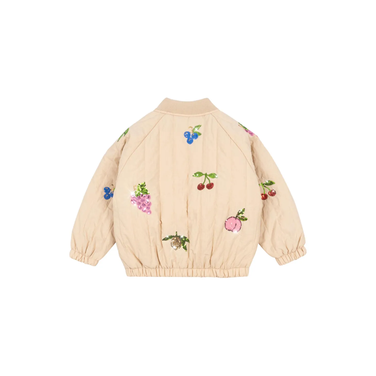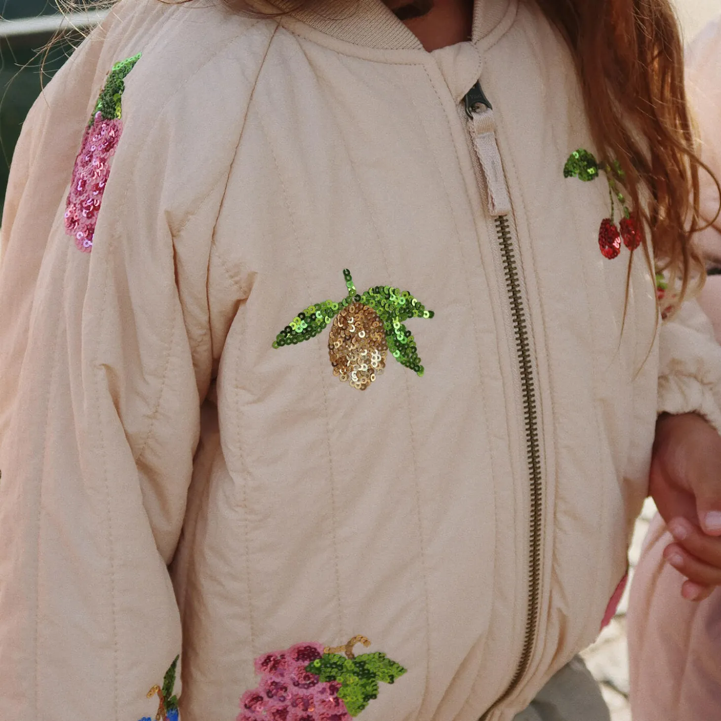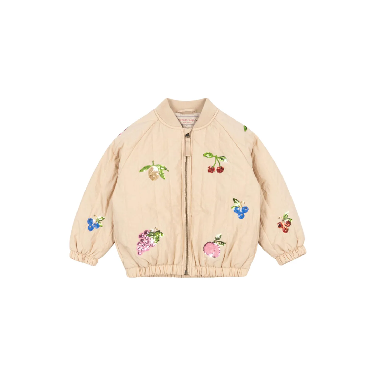Our forever favorite and a true classic in the Konges Sløjd outerwear collection. Juno is a lightweight thermo jacket with polyester padding for effective insulation, and a breathable, fluorine-free impregnation that makes it both wind-resistant and water-repellent. Designed with a decorative sequin pattern in the back.