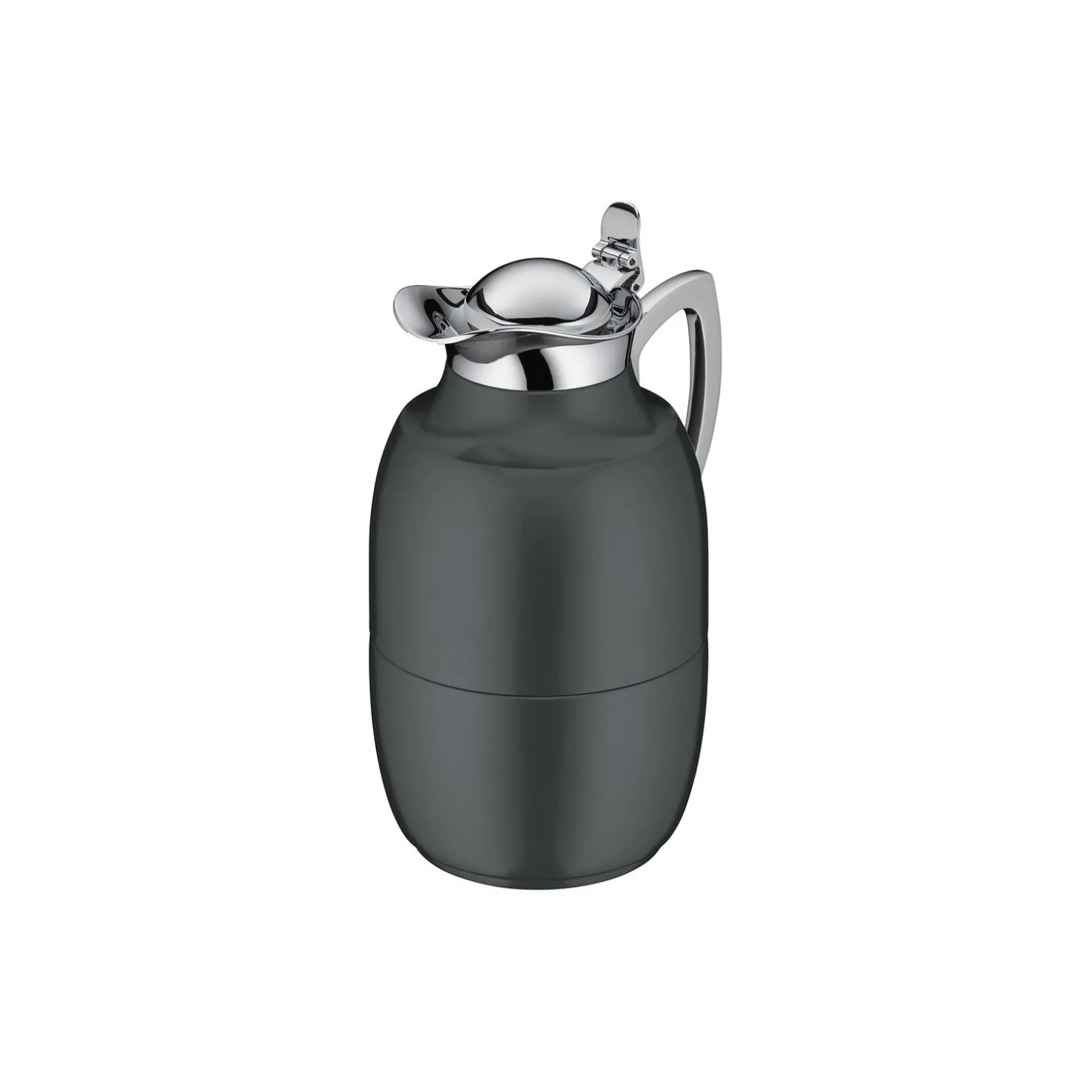 Alfi Juwel er en af verdens mest kendte termokander, og det oprindelige stilrene design kan dateres helt tilbage til 1918. Termokande i poleret stål i høj kvalitet. Dobbeltvægget AlfiDur-indsats i isolerende og hærdet vakuum-glas. Holder varmt i 12 timer, holder koldt i 24 timer. Unikt og praktisk hældesystem. Kan betjenes med én hånd. Ergonomisk, forkromet metalhåndtag. Fremstillet i Tyskland.