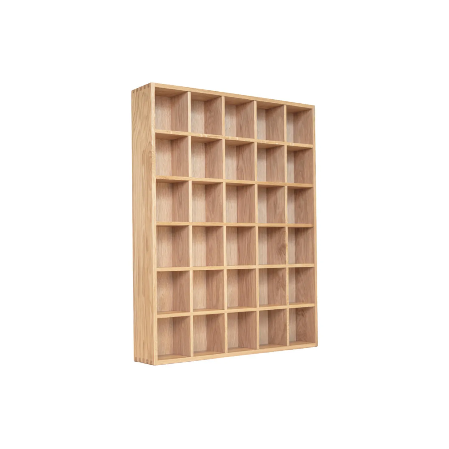 KA33 kopkassen er lavet af højkvalitets europæisk egetræ. Den kan rumme op til 30 kopper. Som en ekstra feature har KA33 det unikke kendetegn, at den er vendbar. Den kan nemlig hænge både lodret og vandret. Med KA33 får du mulighed for at udstille dine kopper på en elegant og kreativ måde. De indvendige mål på rummene er 11,5×11,5×9 cm. Kopkassen har en samlet størrelse på 64×77 cm. Beslag til nem ophængning medfølger.