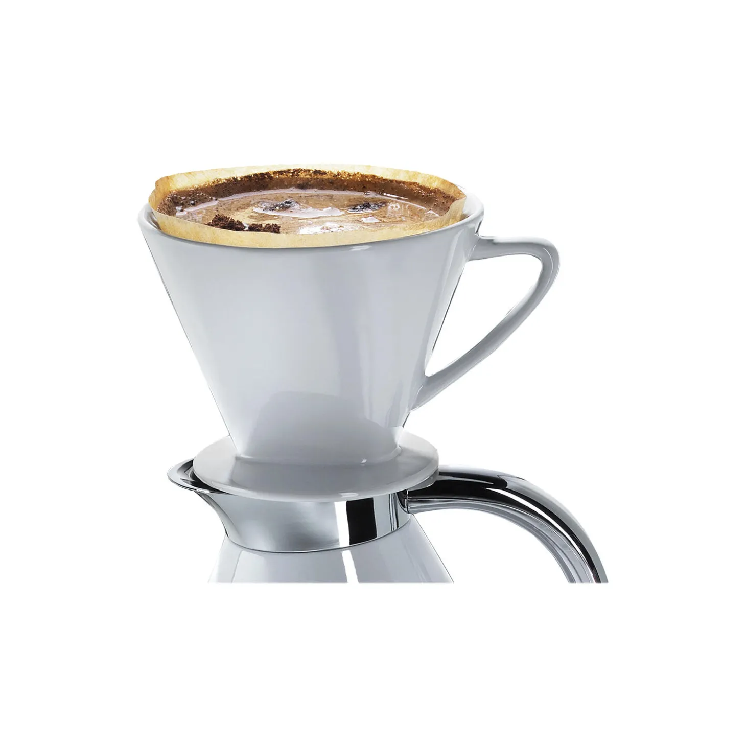 Nyd hele kaffens aroma og det specielle flair et keramisk tragt giver til din drik, Hæld gradvist vand over tragten med et filter i cirkler fra inderst til yderst, så al kaffen er dækket af vand. Sådan får du det meste af kaffens duft frem.