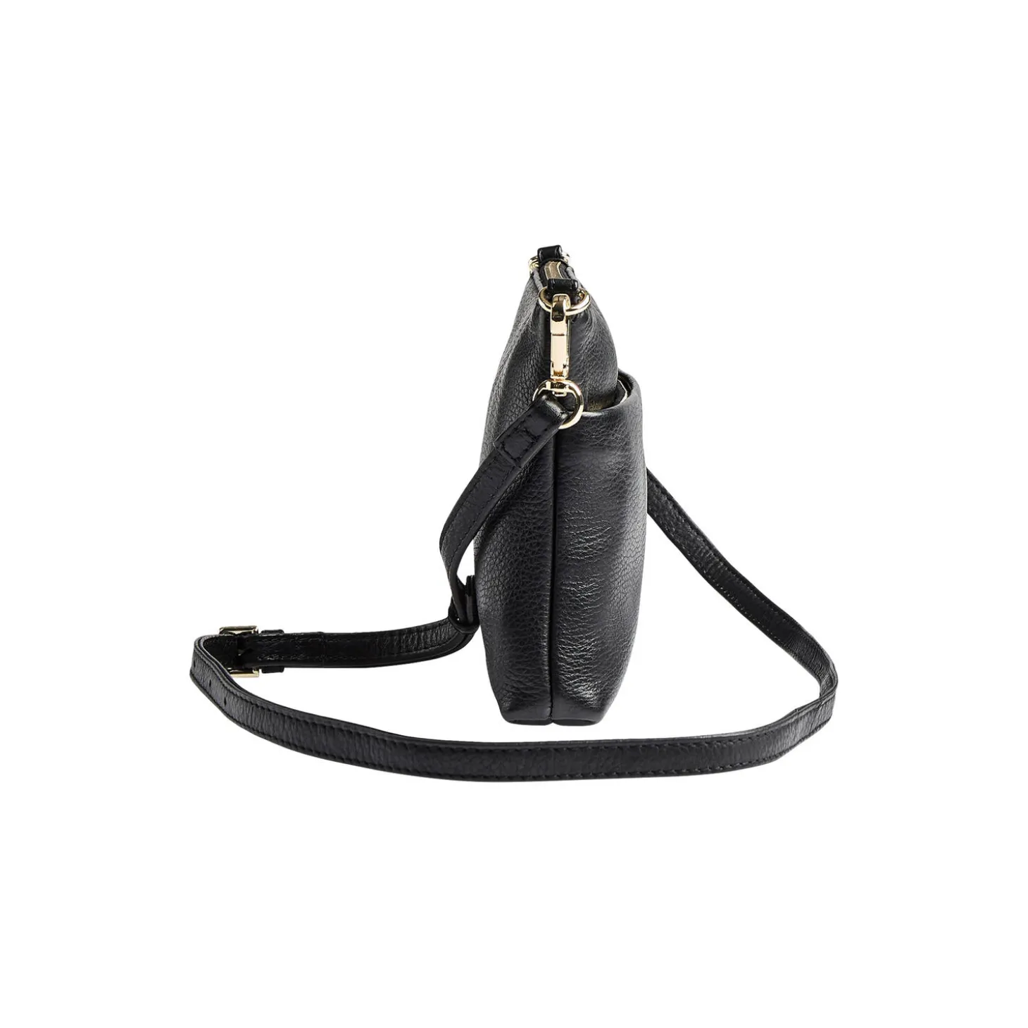 Karima Crossbody bag fra Markberg er en fin taske. Den er lavet af kalveskind, hvilket giver den et eksklusivt udseende og en blød fornemmelse. Med lynlåslommen på fronten er den ideel til opbevaring af småting, som man gerne vil have hurtigt adgang til. Det store rum indeni giver god plads til det, man måtte have brug for til hverdag, mens lynlås-lukningen sikrer sikkerhed for indholdet. Den justerbare og aftagelige læderstrop gør det muligt at tilpasse tasken til ens personlige stil og præferencer, så man kan bære den som man ønsker. Taskens indvendige for i 100% bomuld tilføjer komfort og holdbarhed, og de kompakte mål 16 cm x 24 cm x 3 cm, gør den praktisk at have med sig uden at være for voluminøs.